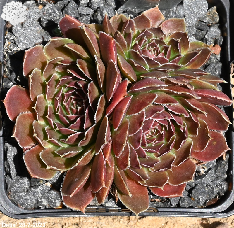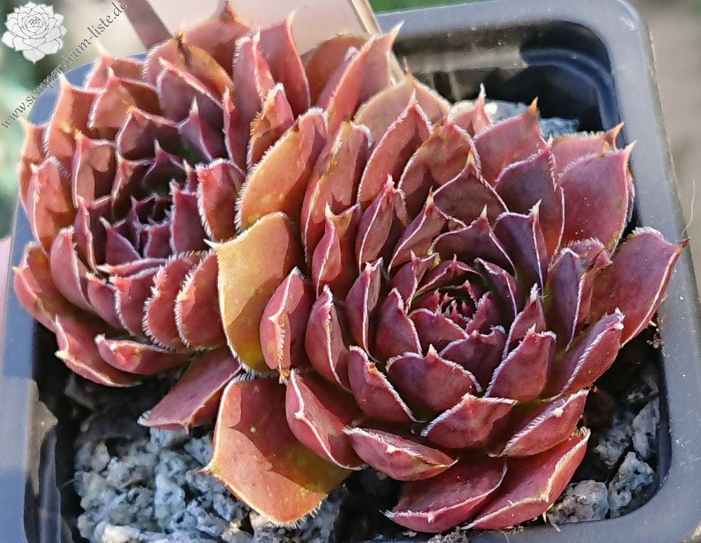 kleine Rosetten, Blätter rundlich, kurz bespitzt, weinrot, Ränder hell