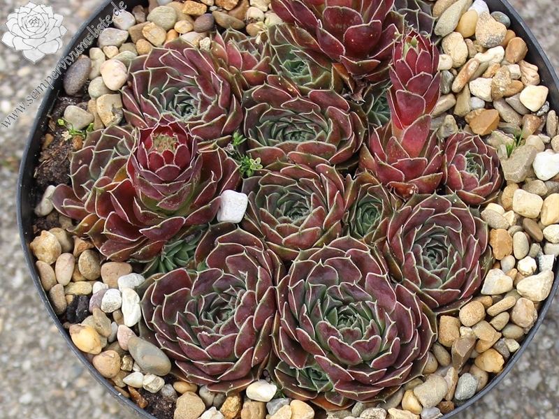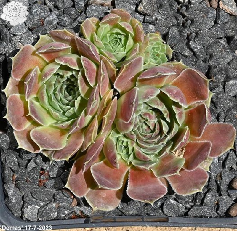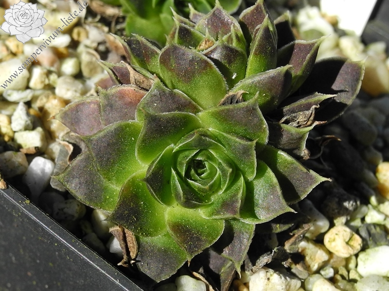 Eine hübsche kleinrosettige Auslese von Gaston Wuyts mit spitzen Blättern in apfelgrünem und violettem Pastell.
