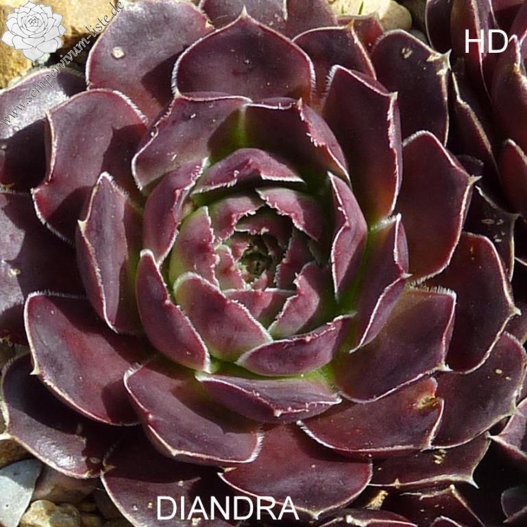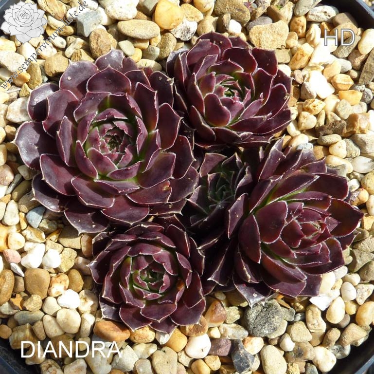 Rosetten bis 6 cm, Blätter rundlich, kurz bespitzt, rot - lila, Blattränder hell bewimpert