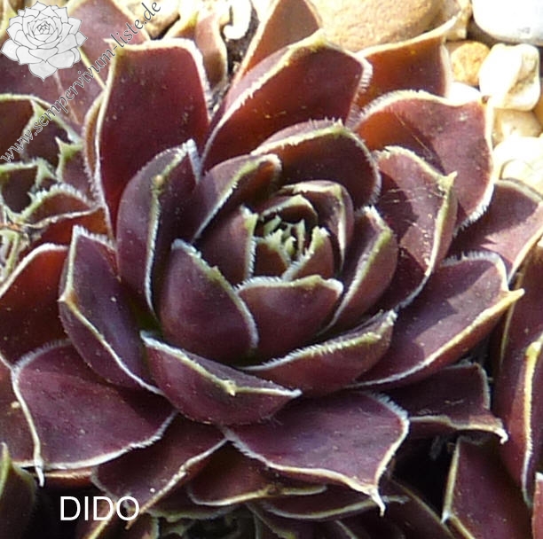 Rosetten bis 5 cm, Blätter lanzettlich, lang bespitzt, trübes Rot, Blattränder hell