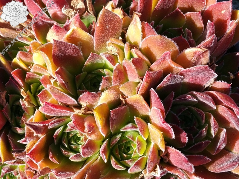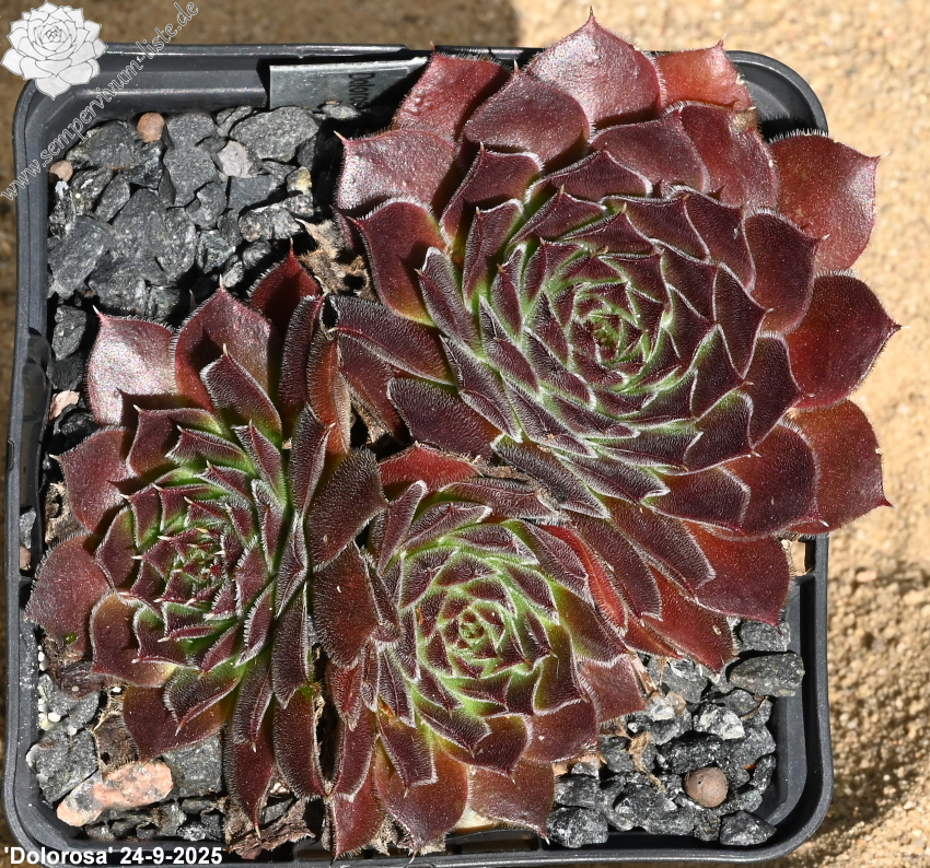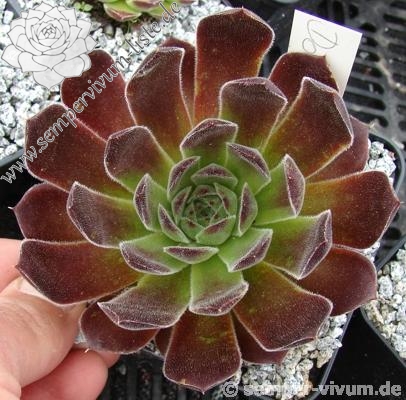 Eine samtene Schönheit mit sehr großen Rosetten. Zwischen den Jahreszeiten von olivgrün bis karminrot und bronzefarben.