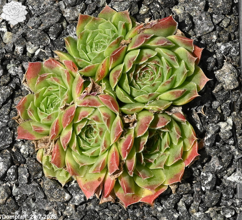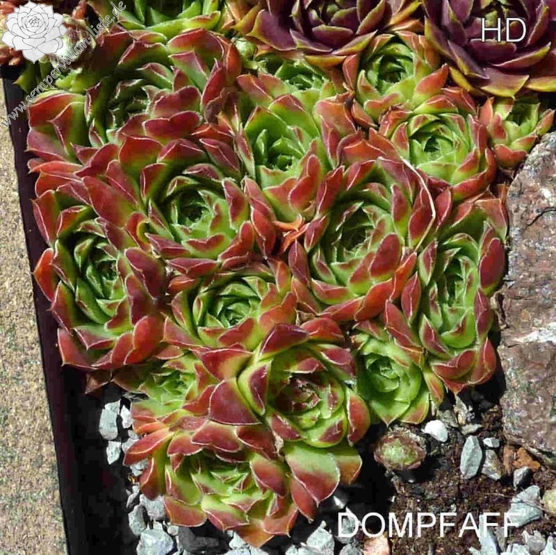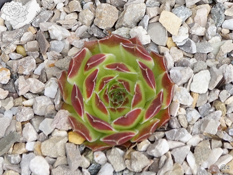 Rosetten bis 7 cm, Blätter oval, hellgrün, obere Blattdrittel leuchtendes Rot, später in grün übergehend, Blattränder leicht bewimpert