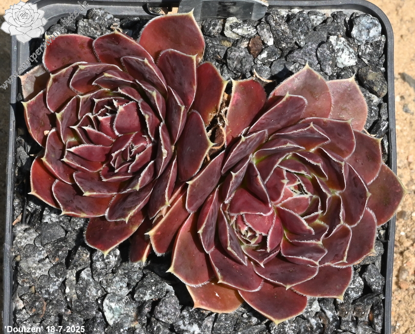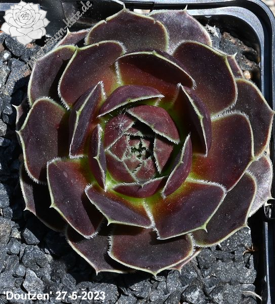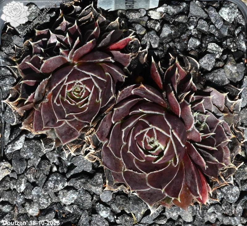 Rosetten bis 5 cm, Blätter rundlich, kurz bespitzt, trübes Lila, Ränder hell
