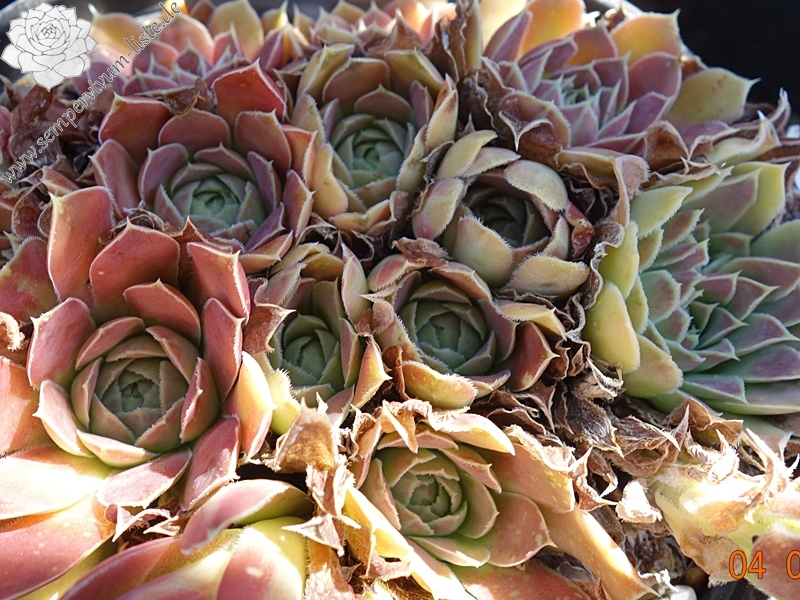 Rosetten bis 8 cm, spatelige Blätter, Herz lindgrün, Rest rosa - braun