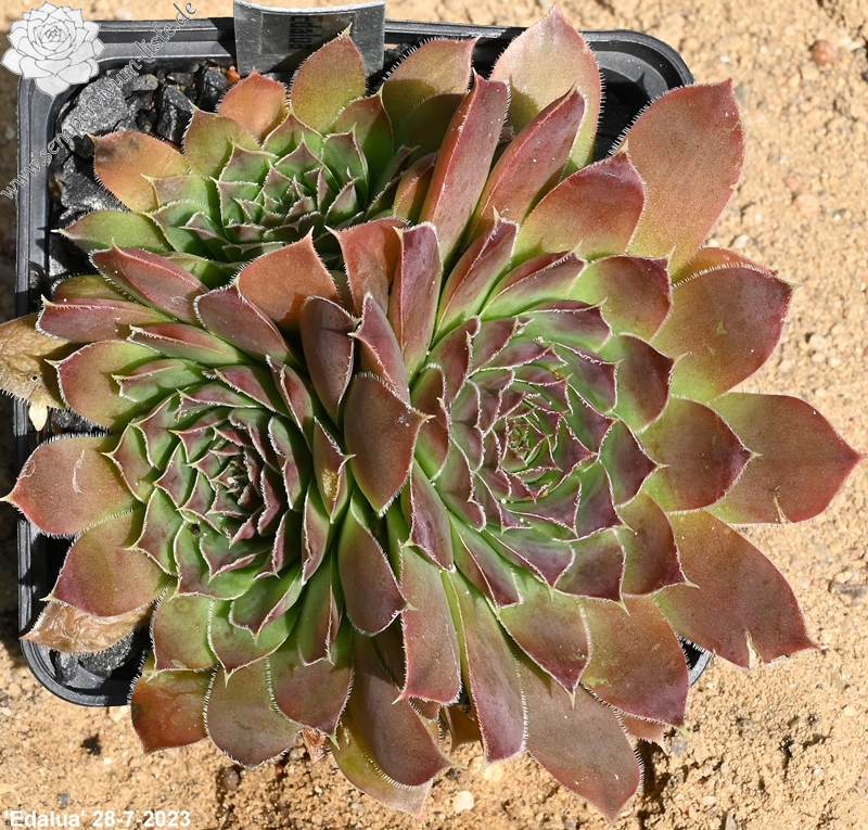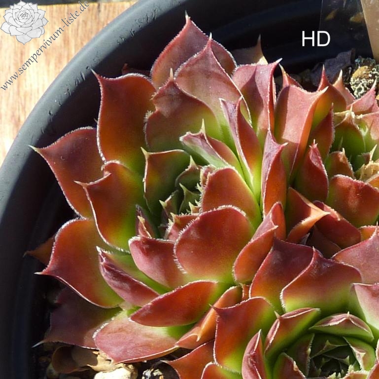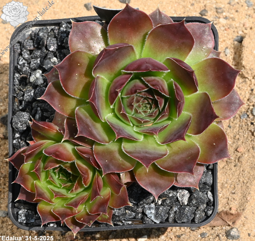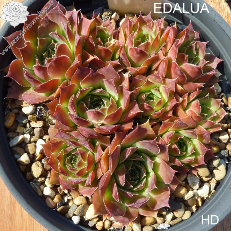 Diese Sorte wurde Anfang dieses Jahrhunderts benannt. Im Juni besitzen die rosa-orange-grünen Rosetten eine sehr attraktive Form.