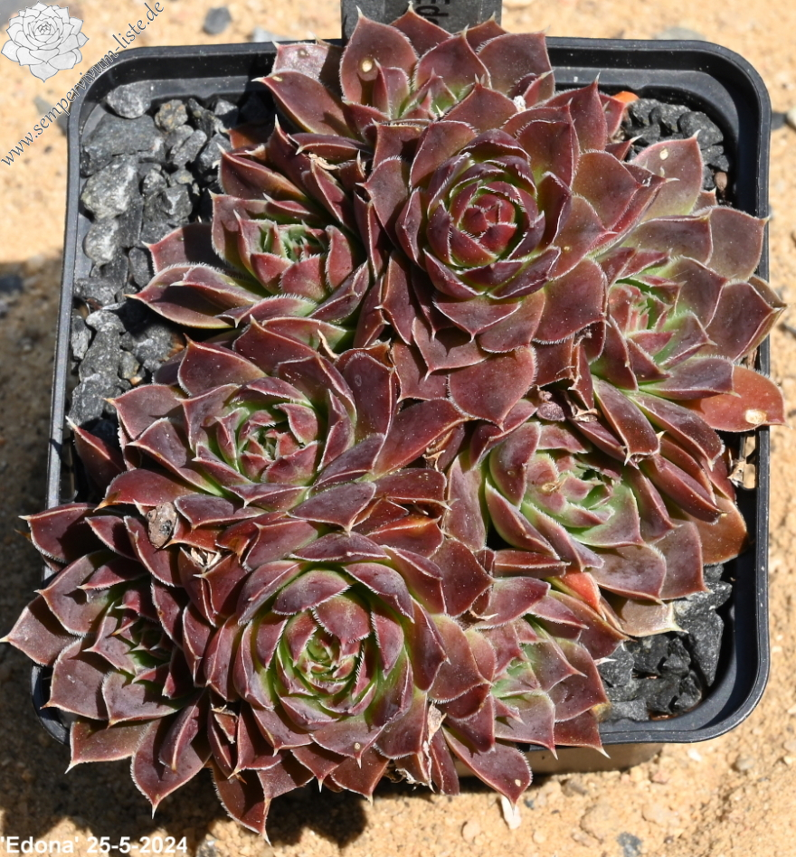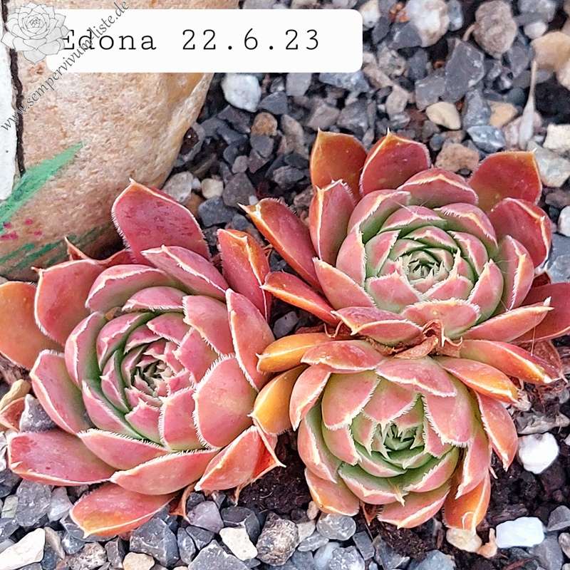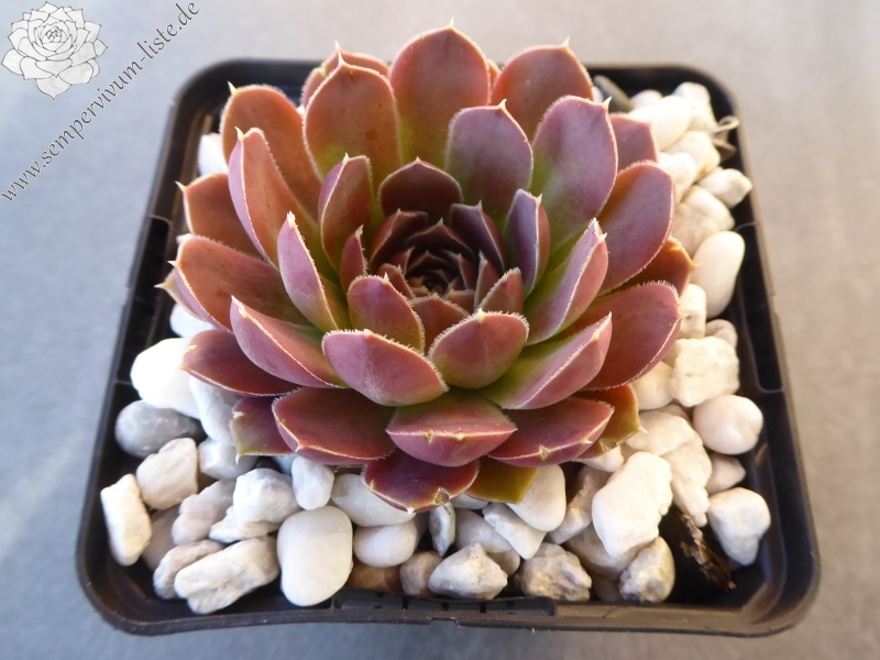 kleine Rosetten, Blätter oval, lang bespitzt, dunkles Rot - Orange - Verkehrspurpur