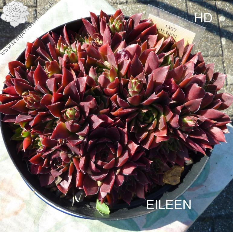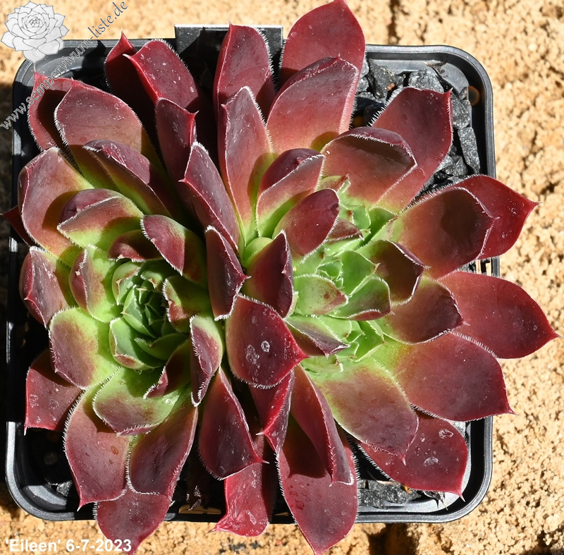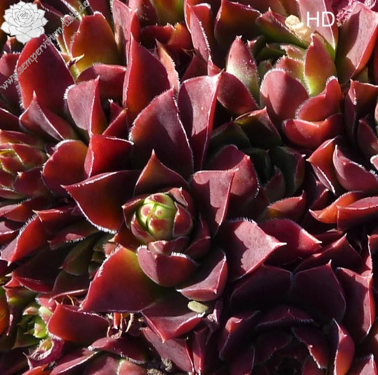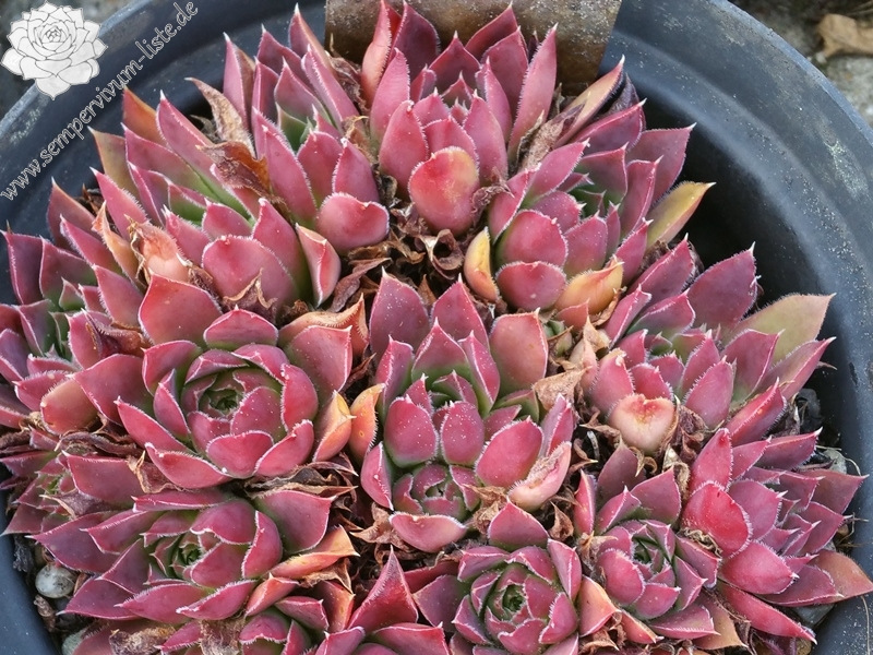 Violett-purpurfarbene Rosetten, die kompakte Polster bilden.
