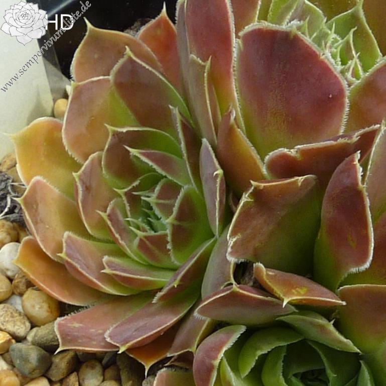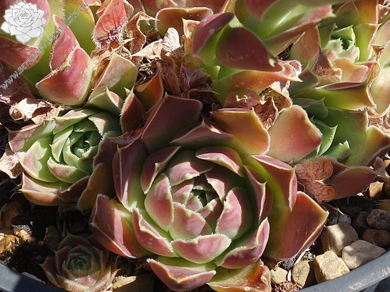 Rosetten bis 8 cm, ovale Blätter, lang bespitzt, Mischtöne hellgrün - rosa - braun