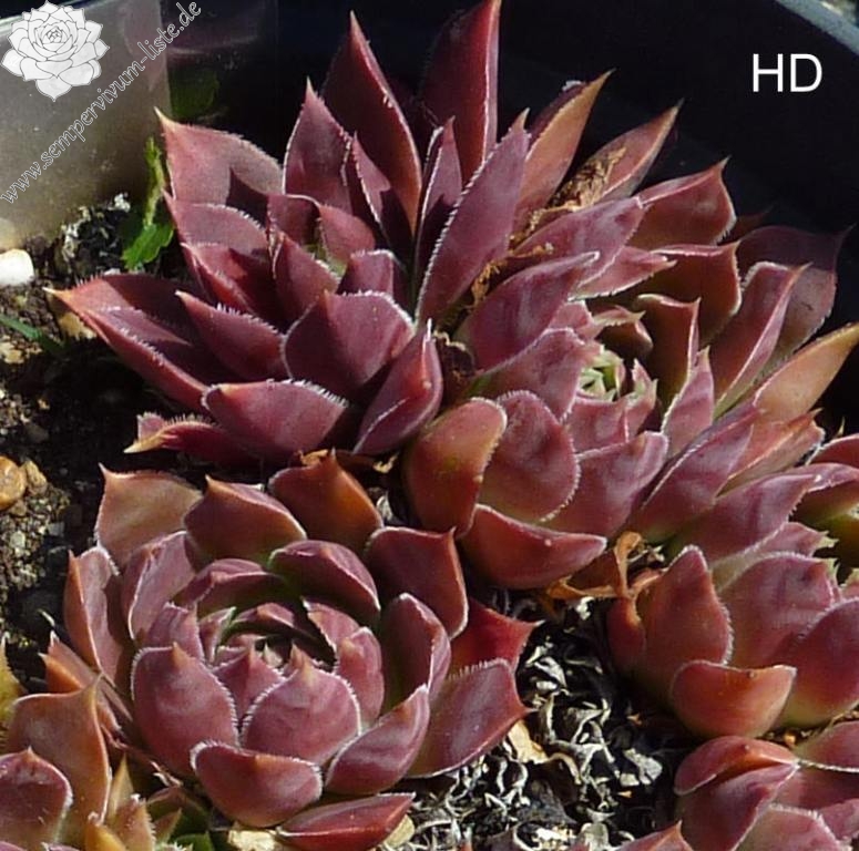 kleine Rosetten, Blätter linealisch spitz auslaufend, dunkelrot - lila