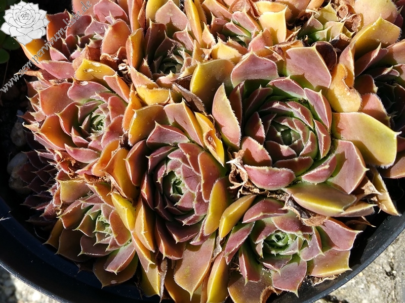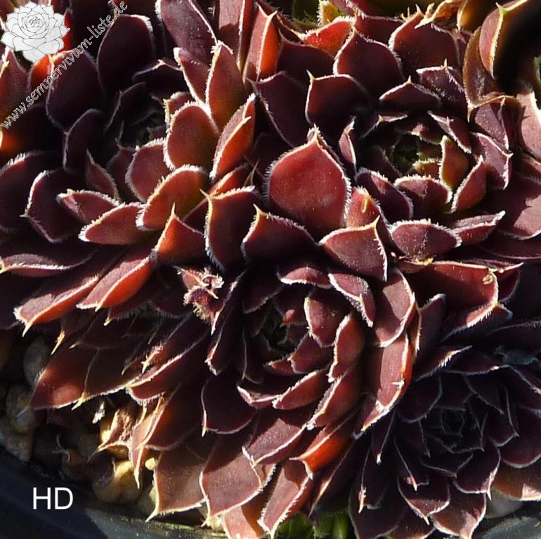 Rosetten bis 5 cm, Blätter oval, lang bespitzt, helles Grün - dunkles Weinrot, Blattränder hell bewimpert