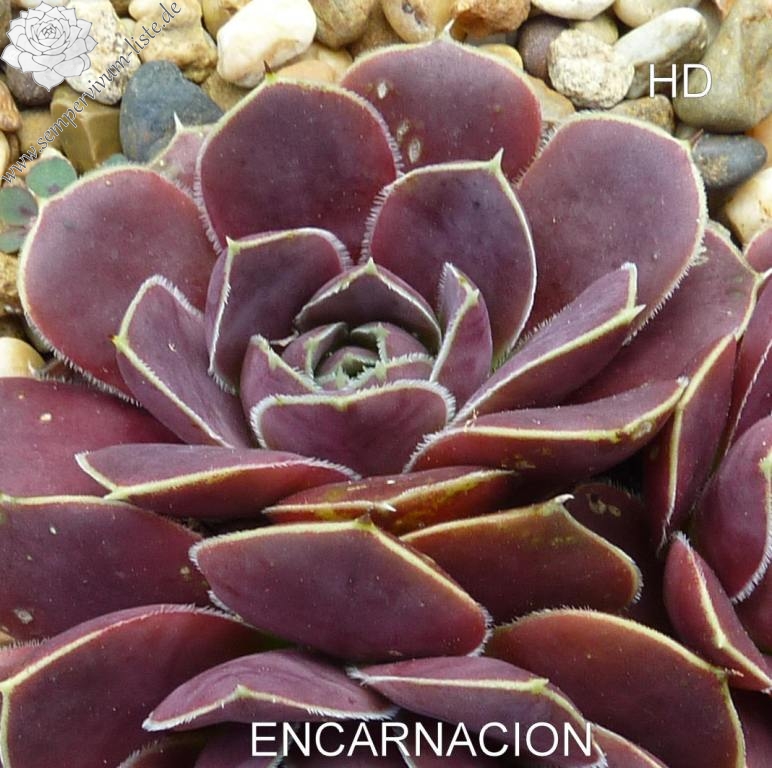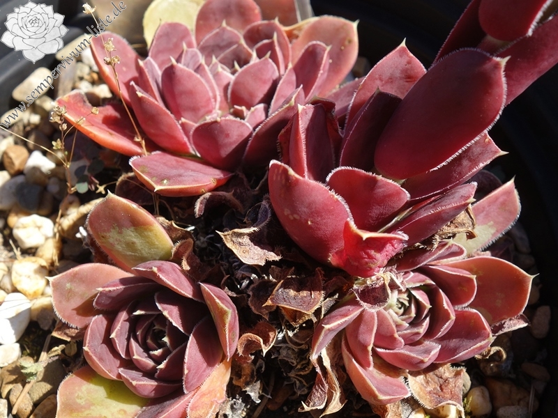 Rosetten bis 6 cm, Blätter rundlich, kurz bespitzt, hellrosa - blaulila, Blattränder hell