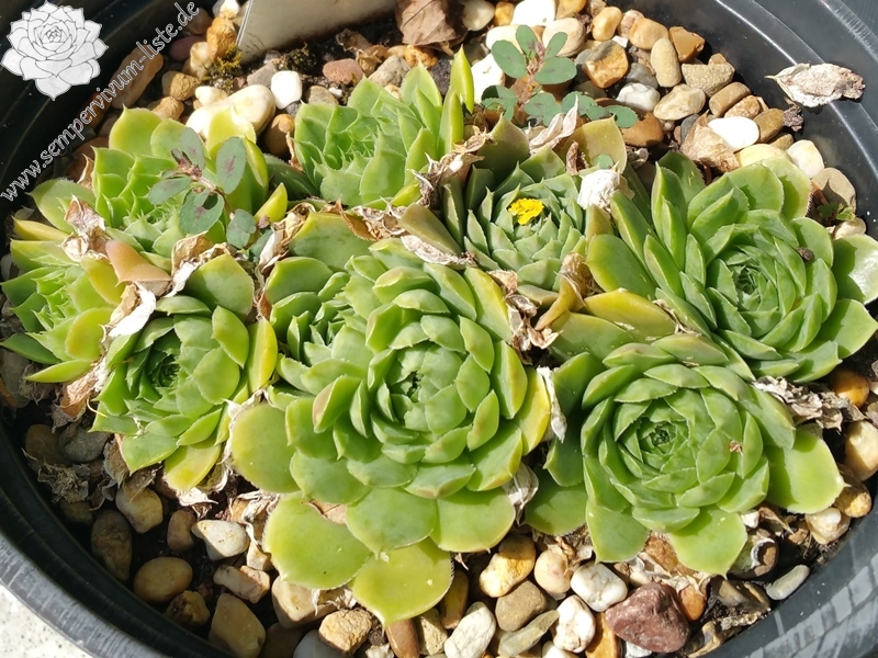 Rosetten bis 4 cm, Blätter oval, kurz bespitzt, Mischfarben hellgrün - gelblich