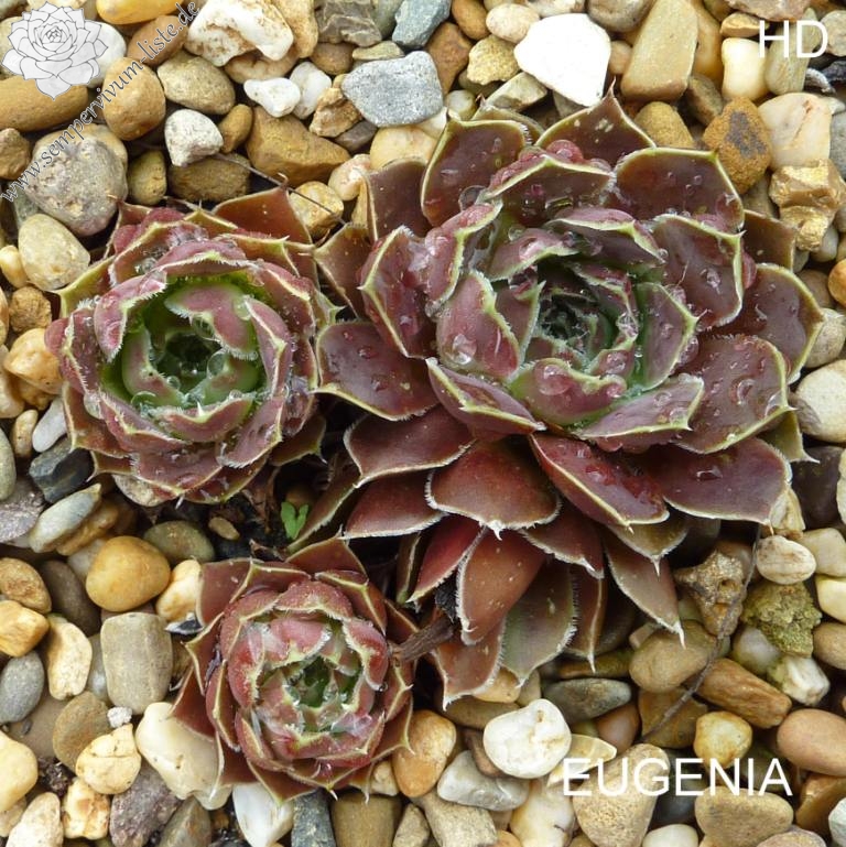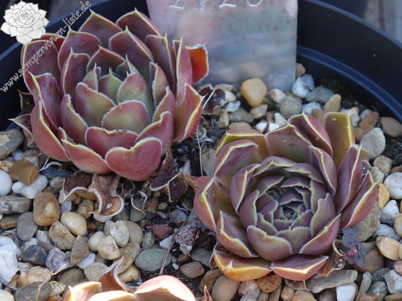 Rosetten bis 5 cm, Blätter eiförmig, kurz bespitzt, lachsrot, Blattränder gelblich