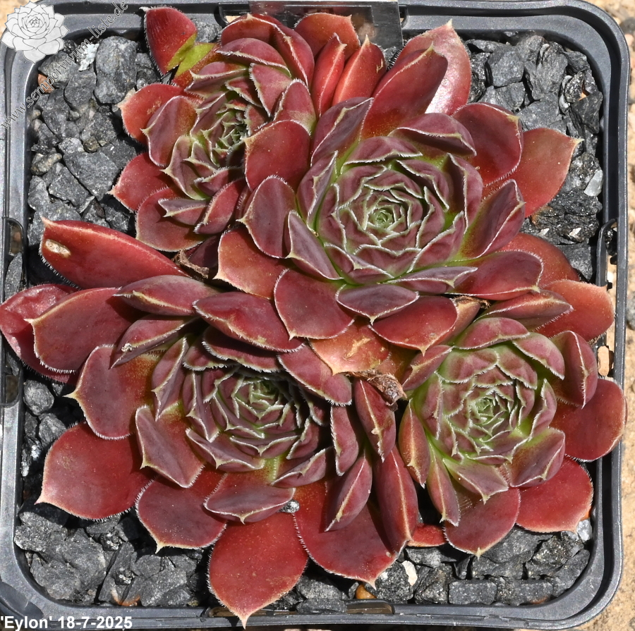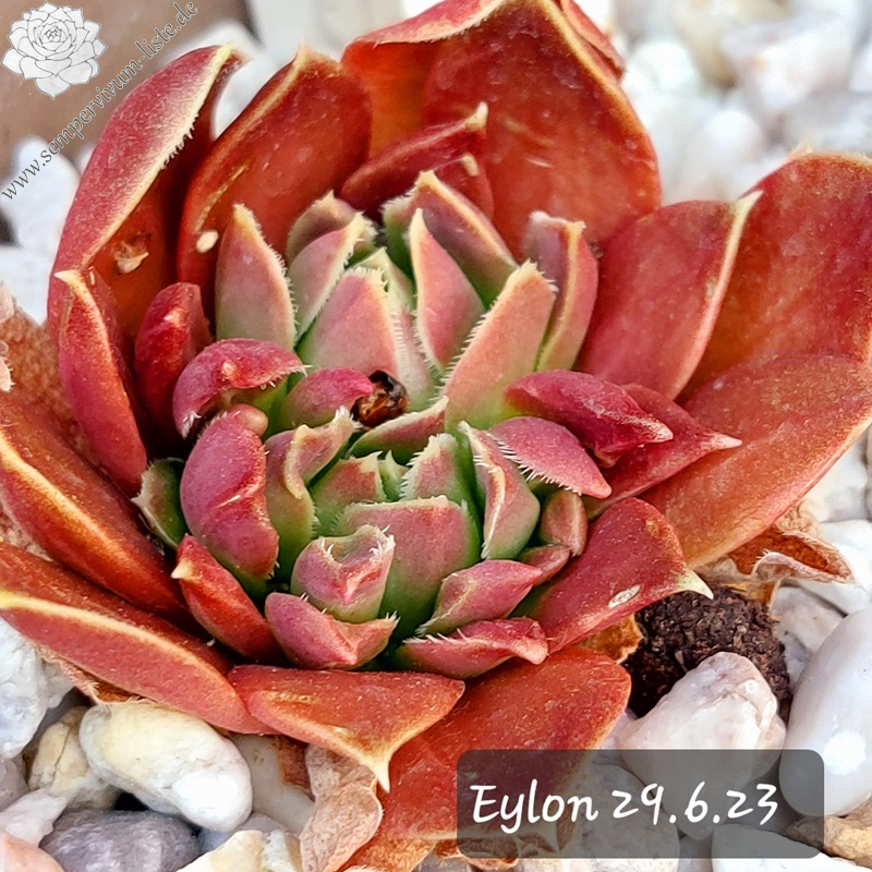 Rosetten bis 6 cm, Basis blassgrün, Rest beigerot - lachsrot, Blattränder bewimpert