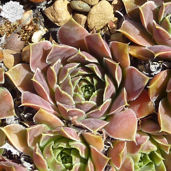 kleine Rosetten, keilförmige Blätter, lang bespitzt, Mischtöne hellrot - rosa - hellgrün, Blattränder hell