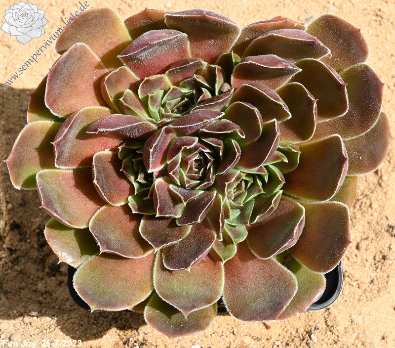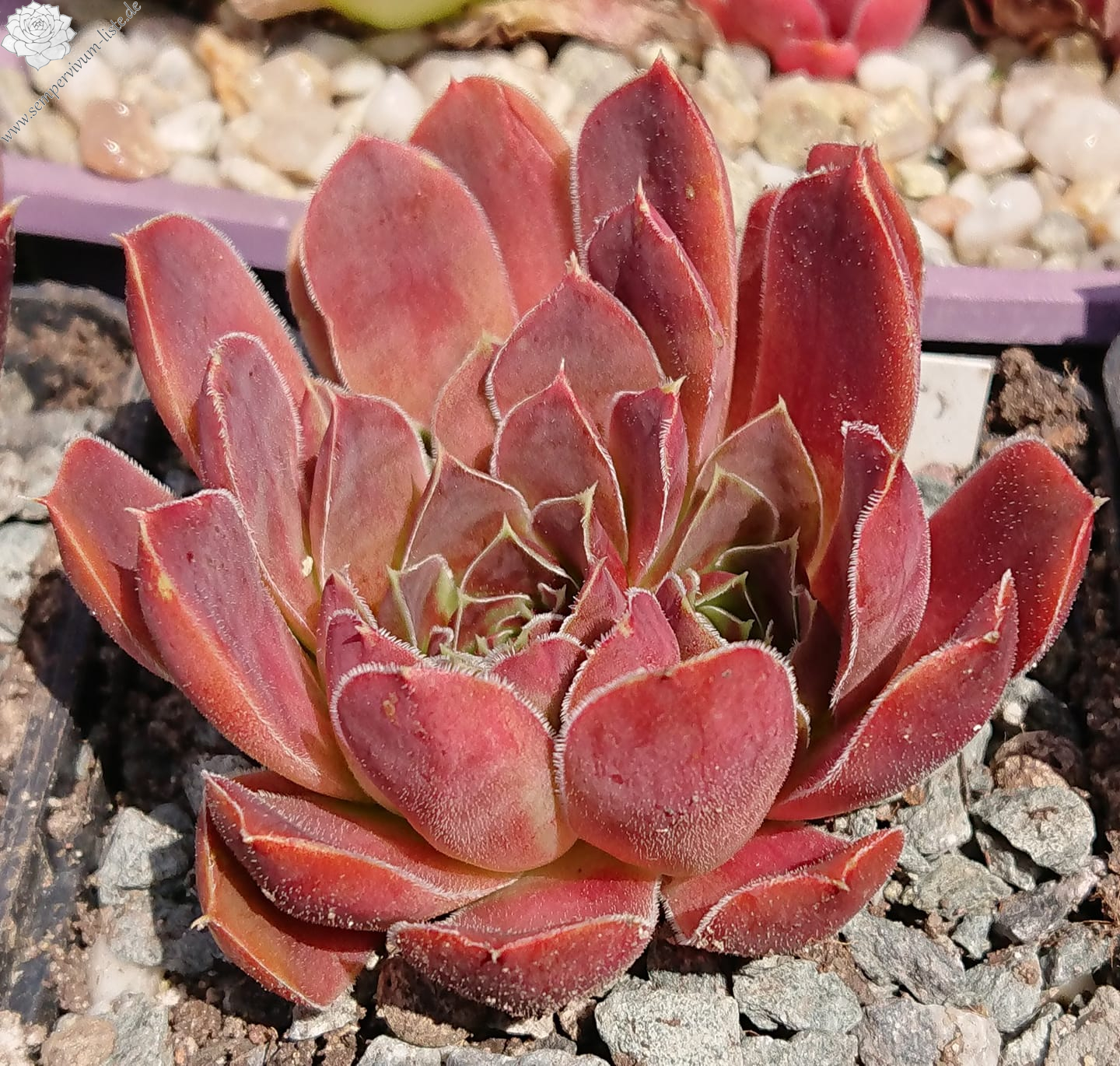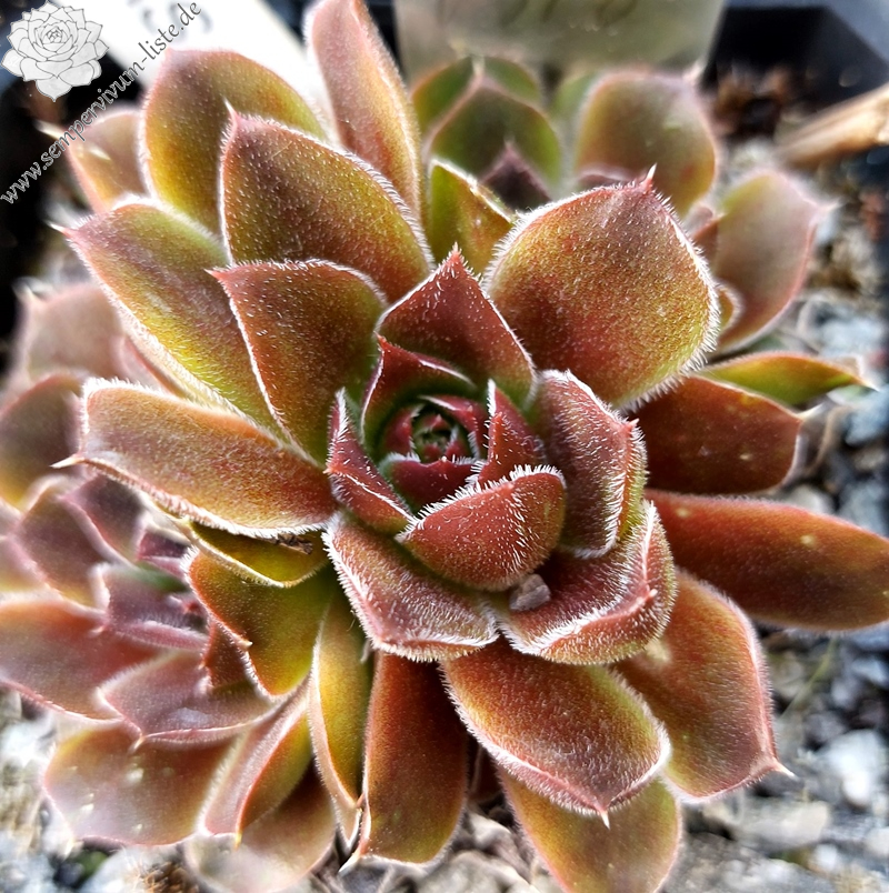 Rosetten bis 7 cm, spatelige Blätter, helles Braun-Orange zu rosa- lila Tönen übergehend