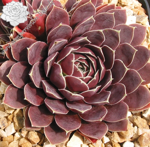 mittelgroße Rosetten, dunkle Rottöne, Ränder hell bewimpert