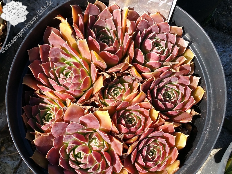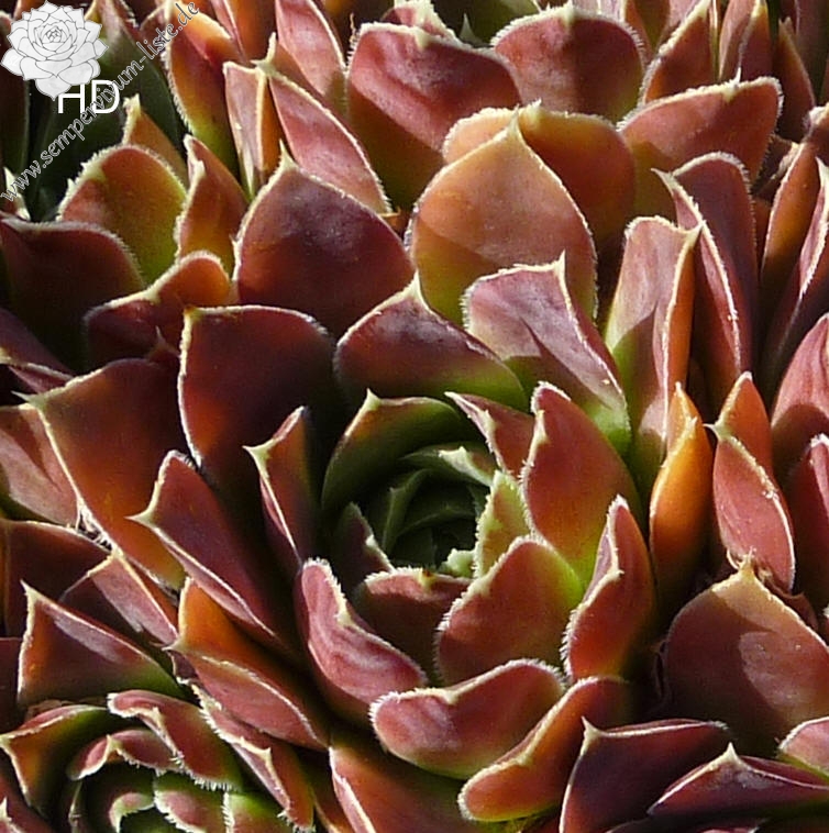 Rosetten bis 6 cm, Blätter spatelig, kurz bespitzt, Herz hellgrün, Rest dunkelrot - braun, silbrig bewimpert