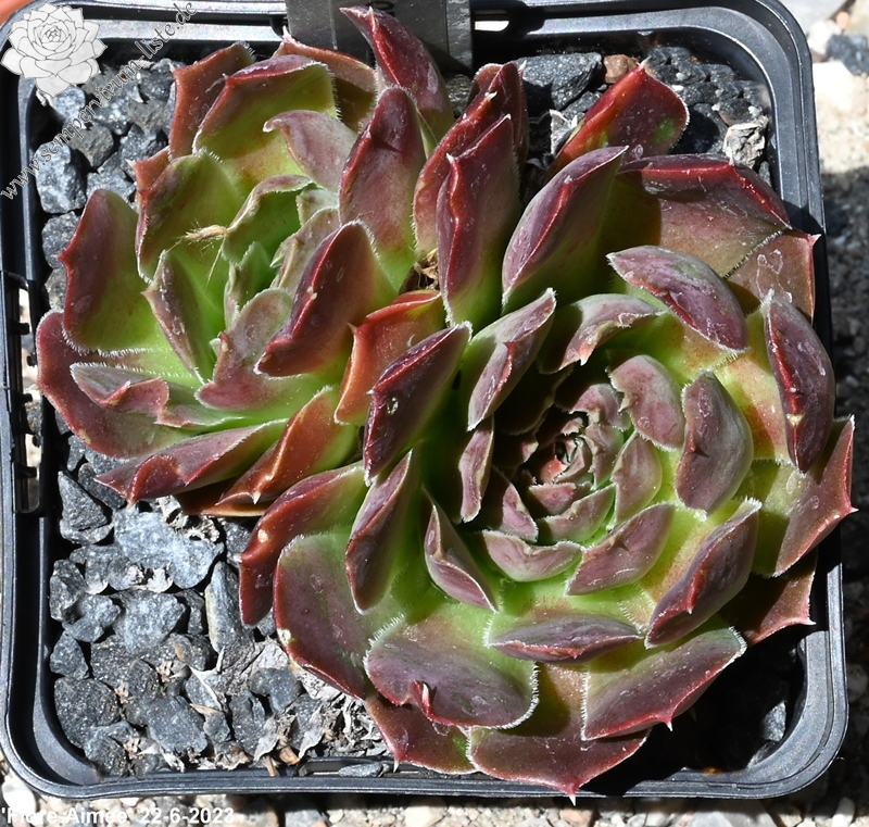 kleine Rosetten, Blätter oval, kurz bespitzt, Basis hellgrün, samtige Substanz, Rest purpurrot - weinrot
