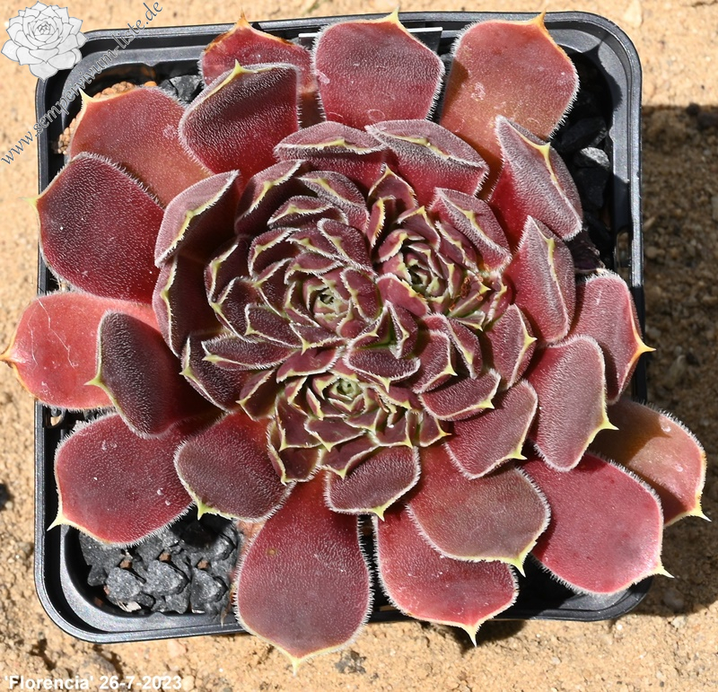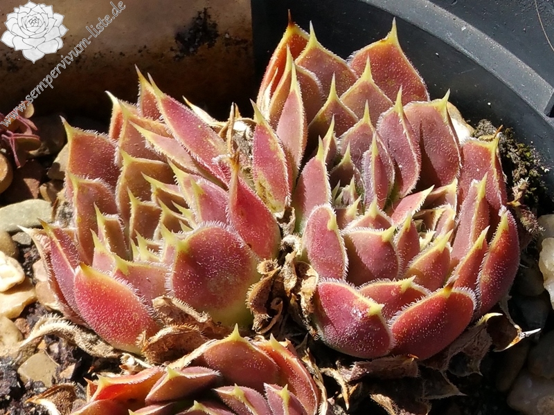 mittlere Rosetten, samtige Oberfläche, rot-orange, Blattränder hell bewimpert