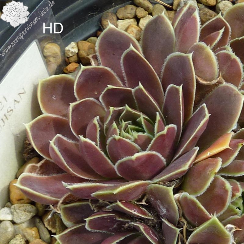 Rosetten bis 5 cm, Blätter lineal, kurz bespitzt, dunkles Altrosa, Blattränder hell, kurz bewimpert