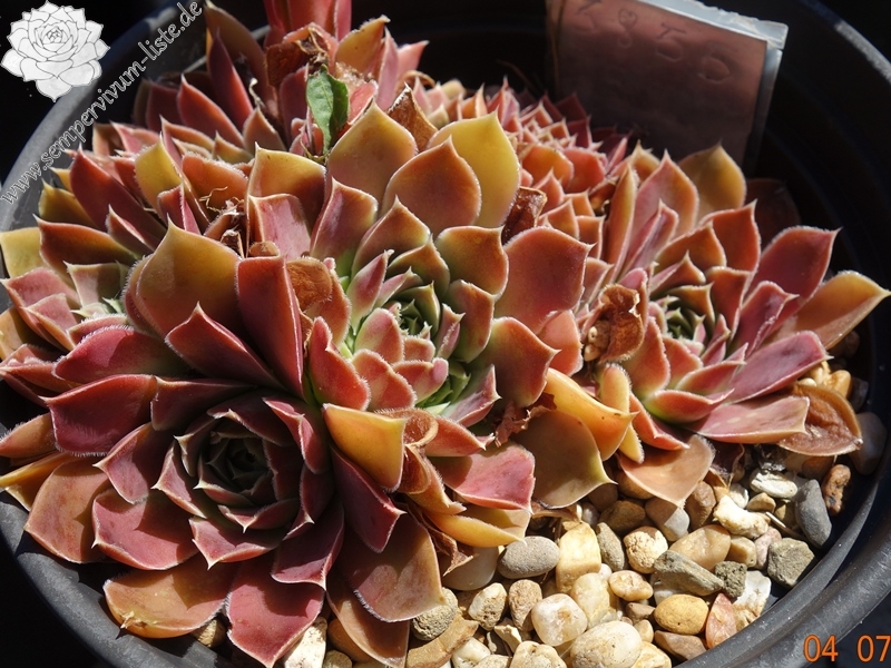 Rosetten bis 5 cm, Blätter oval, lang bespitzt, altrosa - erdbeerrot, Blattränder hell