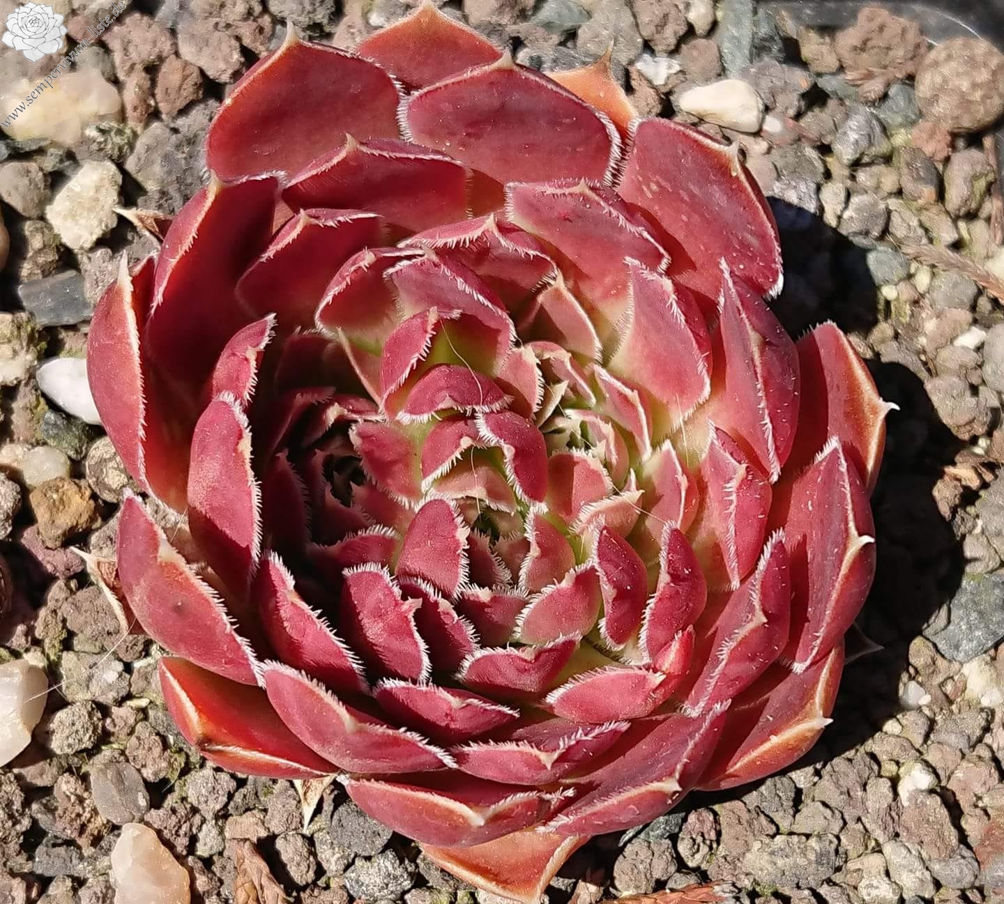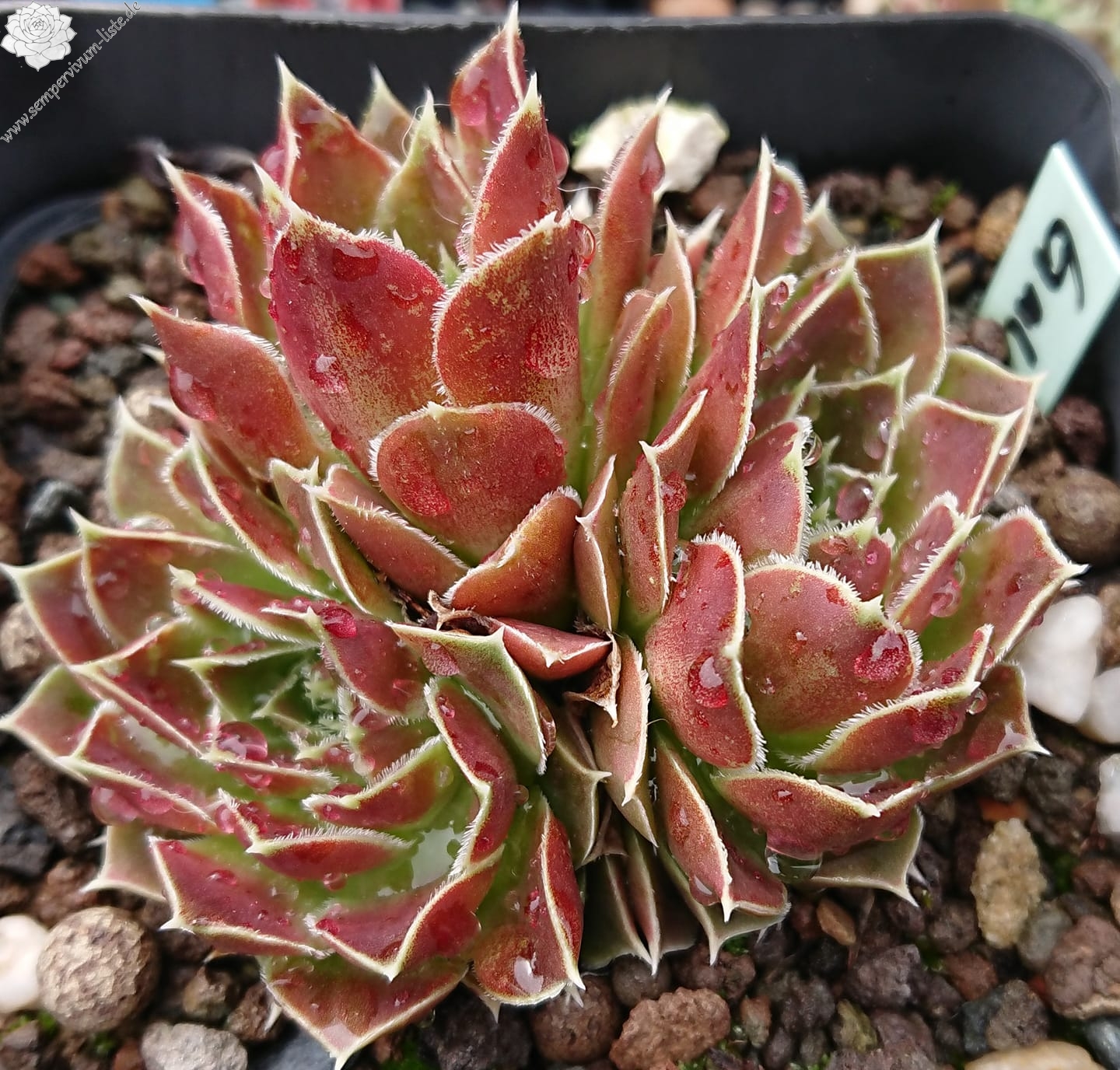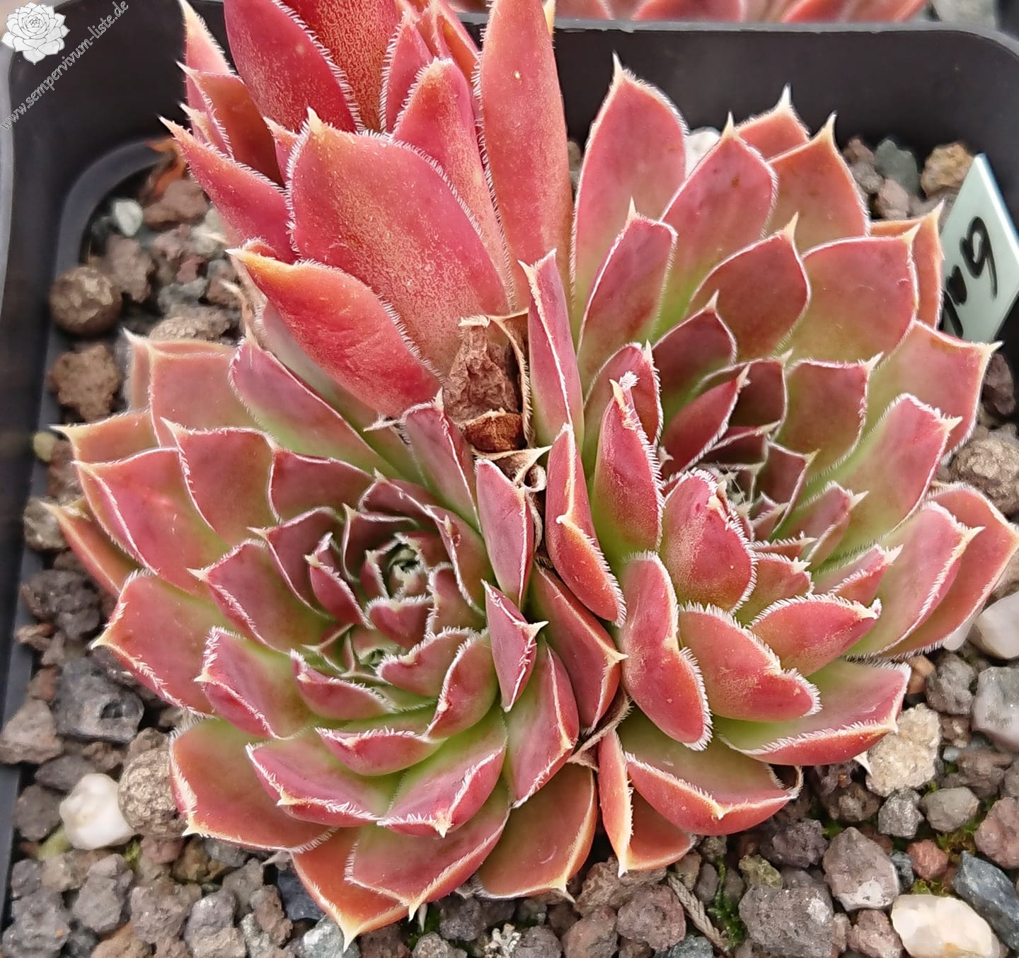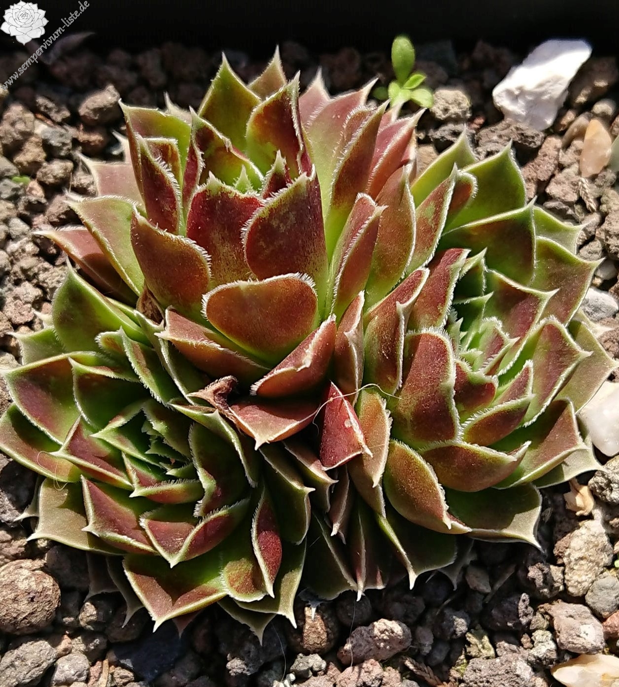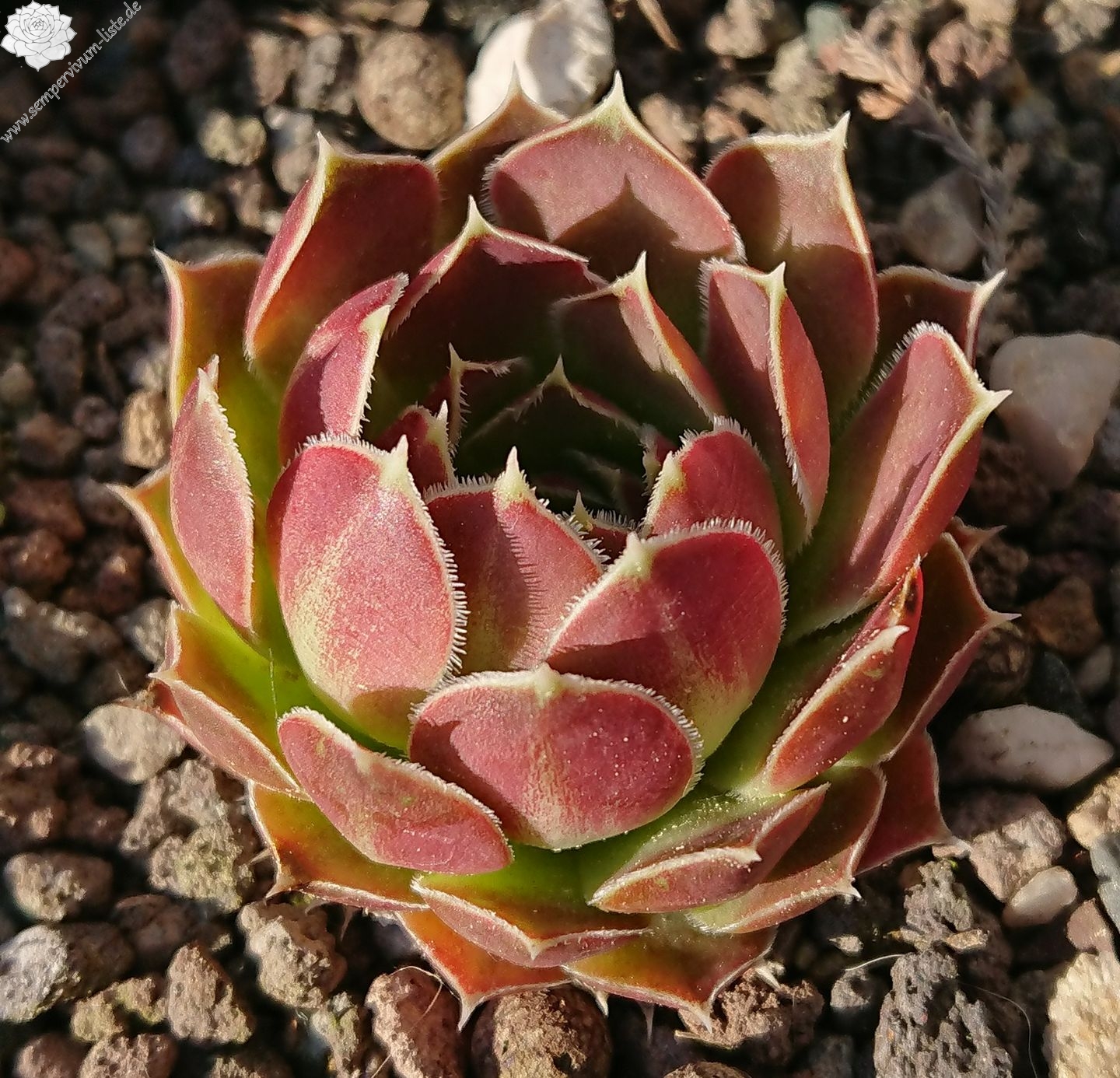 kleine Rosetten, Blätter lanzettlich, perlrosa - beigerot, Blattränder bewimpert