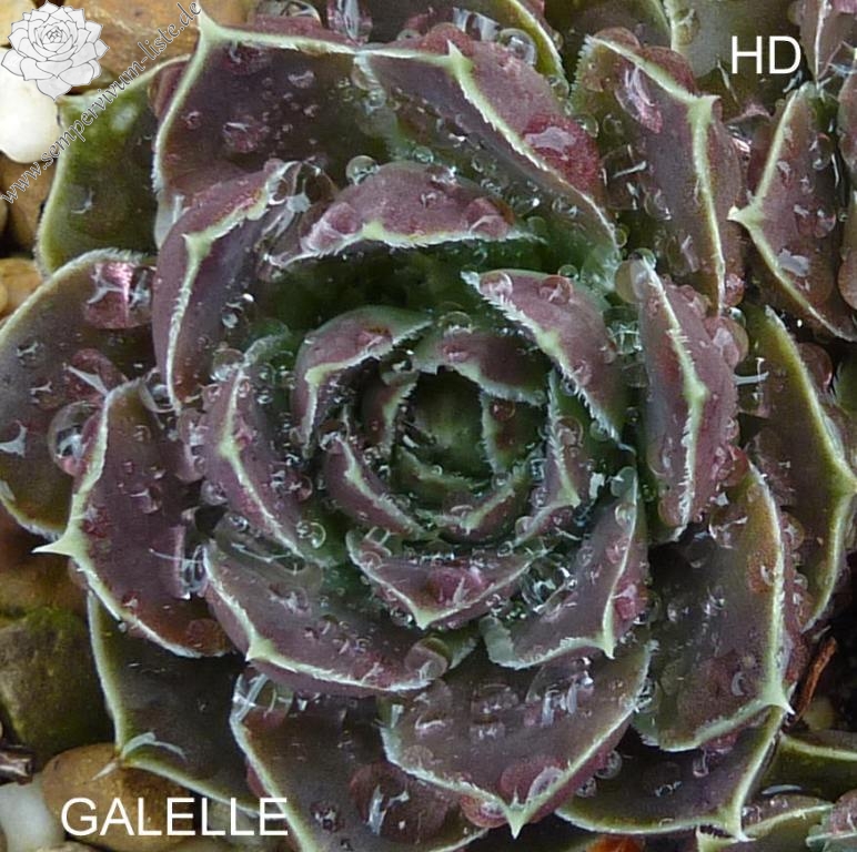 Rosetten bis 6 cm, Blätter eiförmig, kurz bespitzt, resedagrün - blaulila - pastellviolett / Blattränder hell