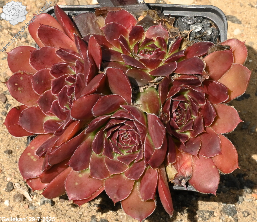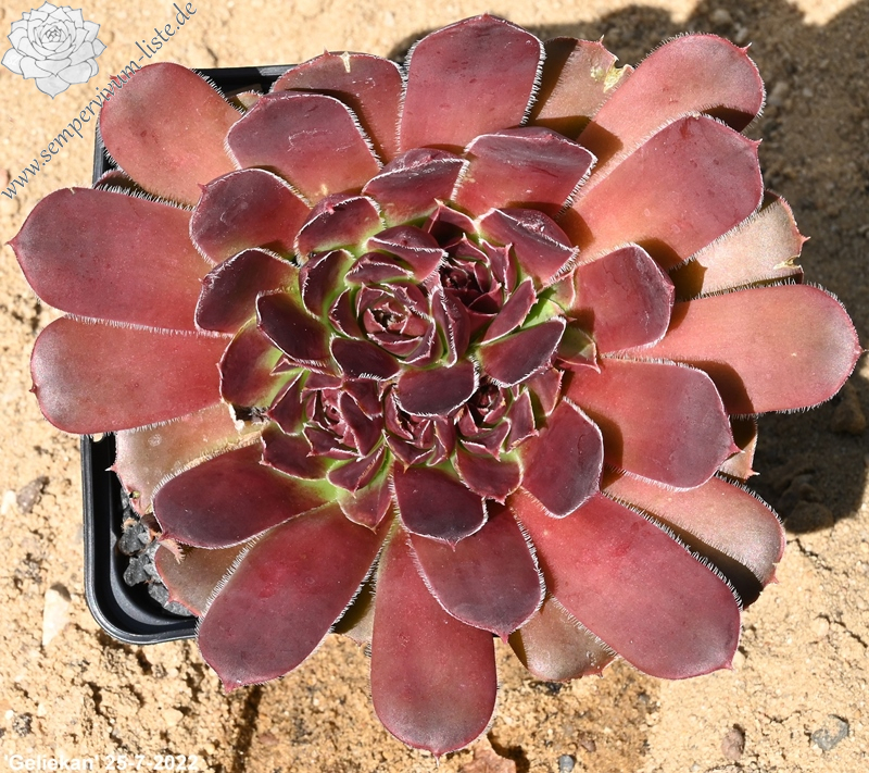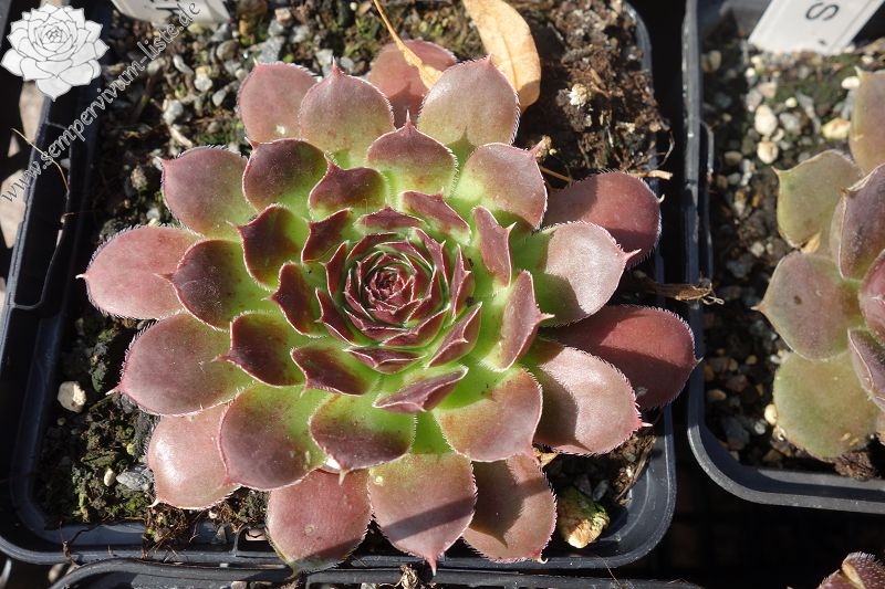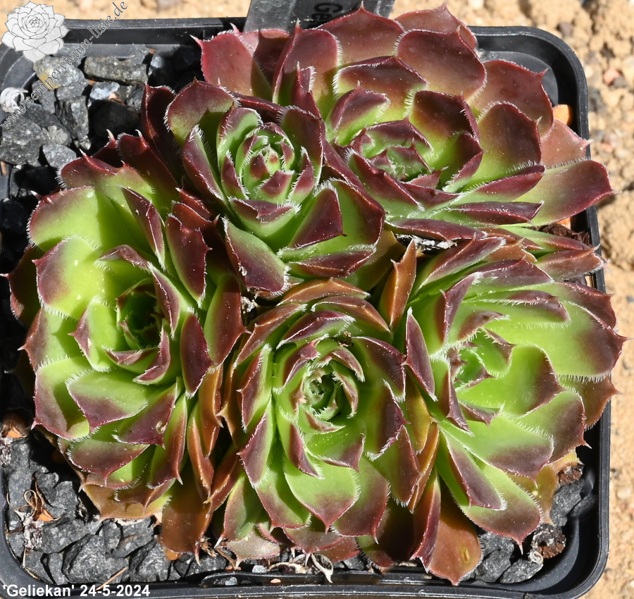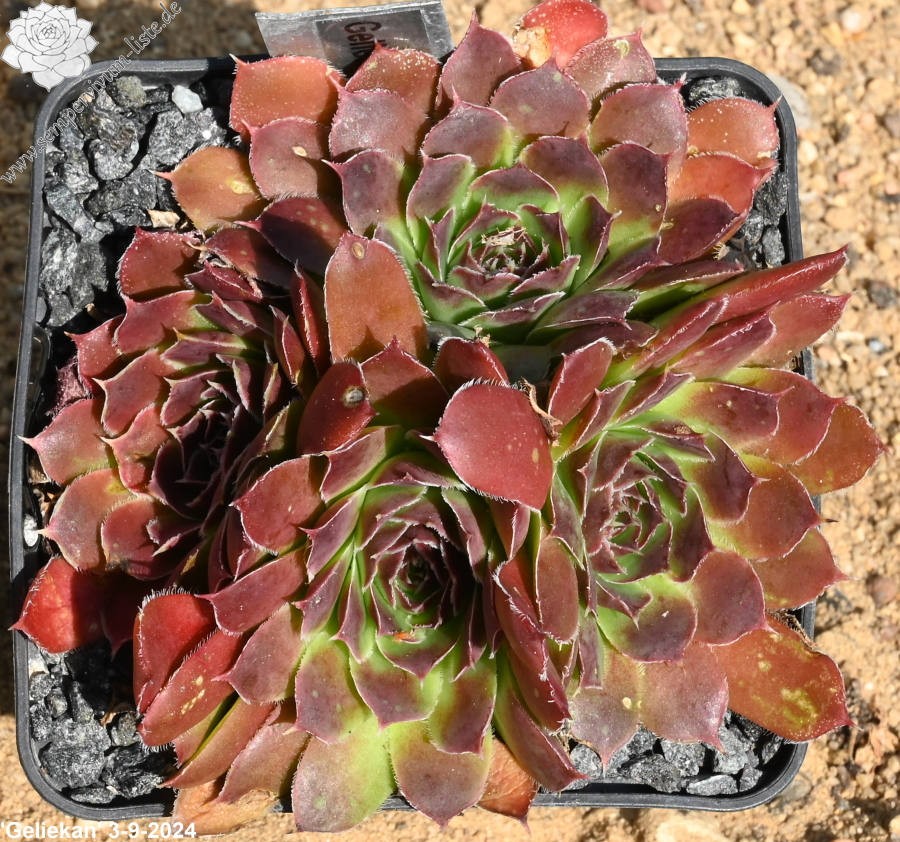 Rosetten bis 6cm, Blätter keilförmig, kurz bespitzt, Mischfarben hellgrün - gelb - rot , Ränder silbrig bewimpert