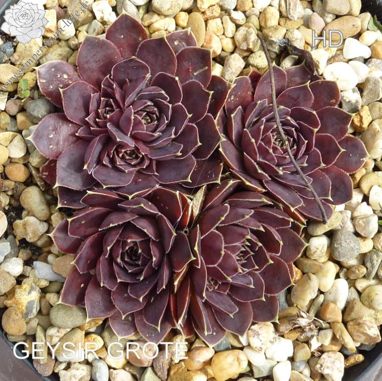 Rosetten bis 5 cm, Blätter oval, kurz bespitzt, rotlila - rotviolett