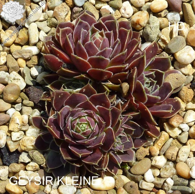 Rosetten bis 5 cm, Blätter oval, lang bespitzt, rubinrot, Blattränder bewimpert