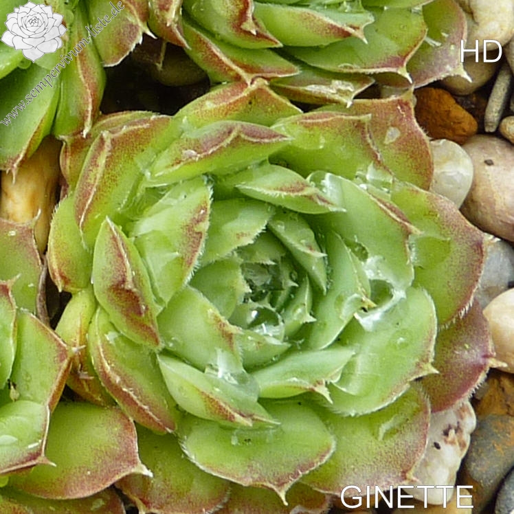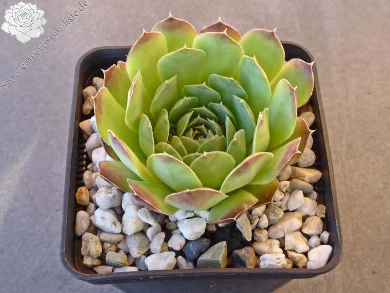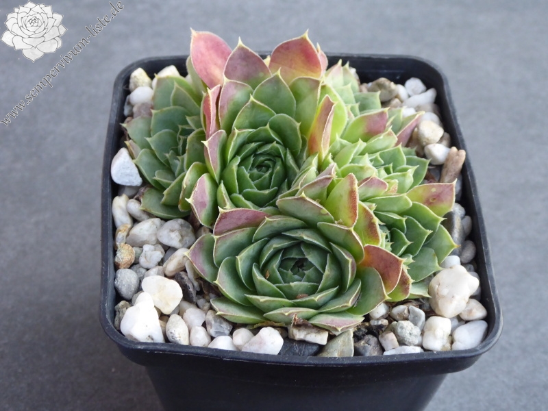 kleine Rosetten, Blätter oval, kurz bespitzt, hellgrün, Spitzen braunrosa marmoriert