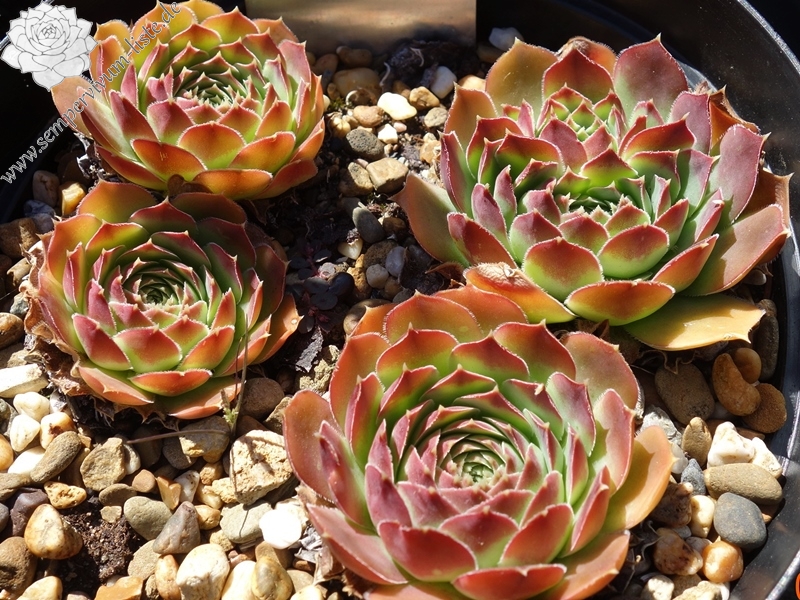 Rosetten bis 10 cm, spatelige Blätter, kurz bespitzt, Basis hellgrün, Rest altrosa - gelb - braun
