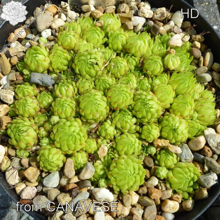 Erwin Geiger: Die kugeligen Rosetten sind gelblich smaragdgrün gefärbt. Bildet wie alle Hen and Chick´s in kurzer Zeit dichte Polster.