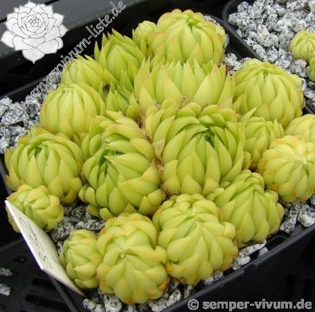 Erwin Geiger: Eine Lokalform aus dem Maira-Stura-Gebiet der Alpen mit kugeligen, grüngelben Rosetten.