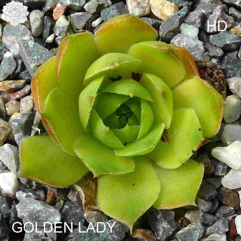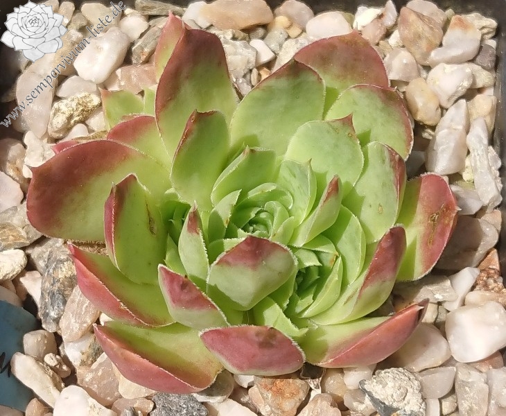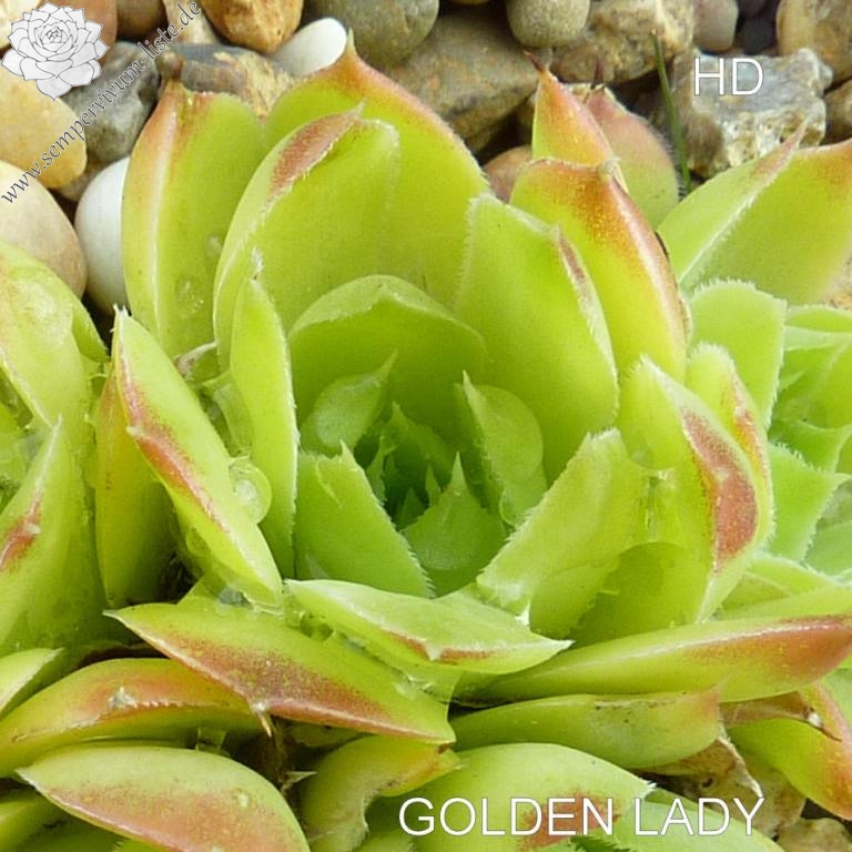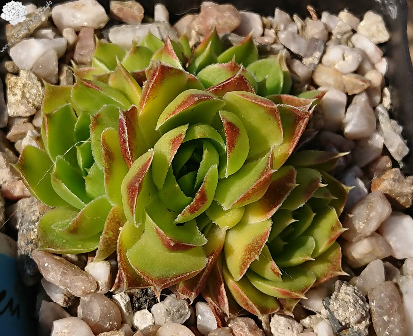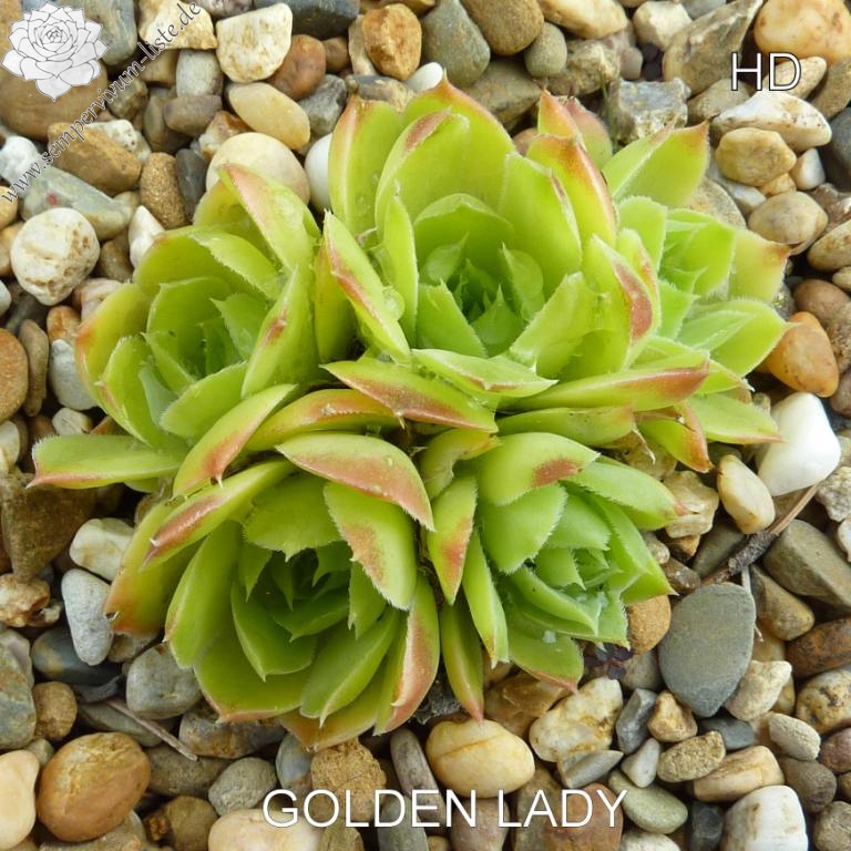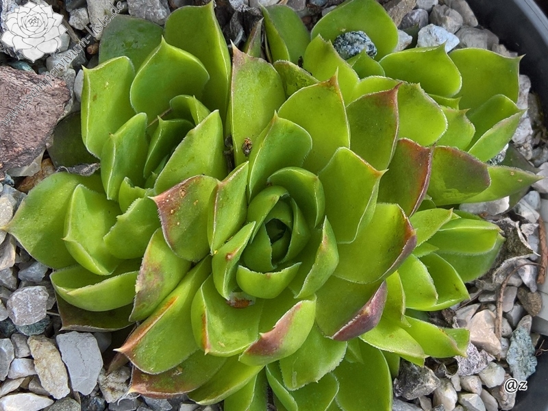 kleine Rosetten, Blätter lanzettlich, kurz bespitzt, hellgrünlich - gelb, Spitzen rotgelb, im Frühjahr ist die gelbe Farbe intensiver