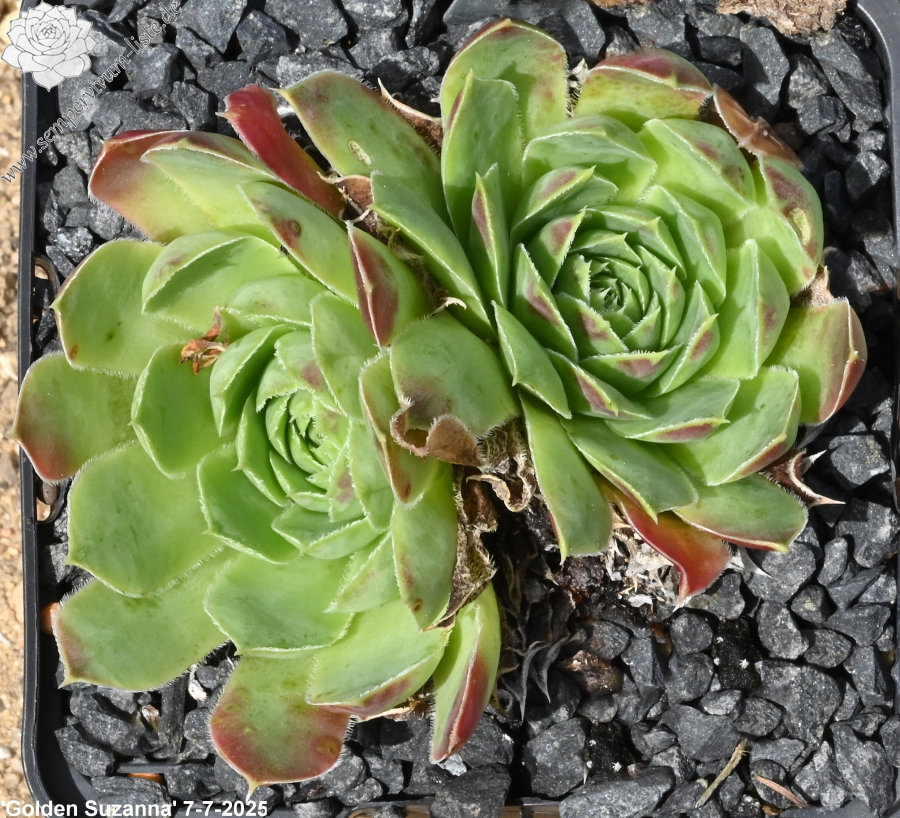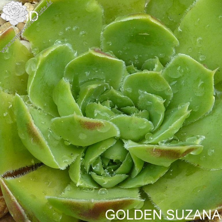 kleine Rosetten, Blätter breit spatelig, helles Grünlich - Gelb mit gelb - bräunlichen Flecken, im Frühjahr ist die gelbe Farbe intensiver