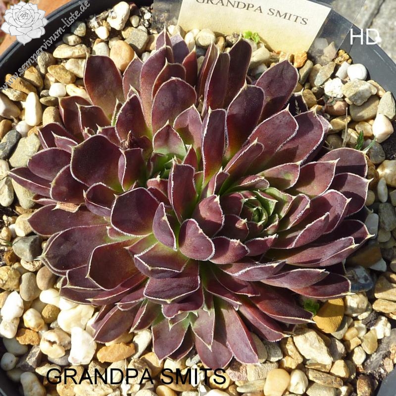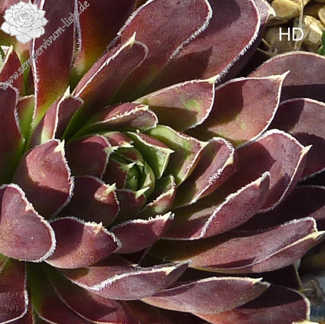 große Rosetten, Blätter linealisch, lang bespitzt, dunkles Weinrot - Lila, Blattränder silbrig bewimpert