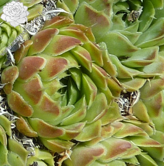 kleine Rosetten, Blätter rundlich, kurz bespitzt, Mischfarben hellgrün - beige, Spitzen helles Braun