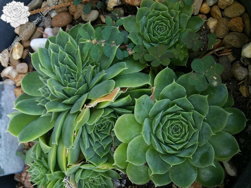 Rosetten bis 5 cm, Blätter oval, kurz bespitzt, lichtgrün - gelbgrün