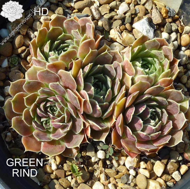 große Rosetten, eiförmige Blätter, kurz bespitzt, Mischtöne beige - rosa, Blattränder bewimpert