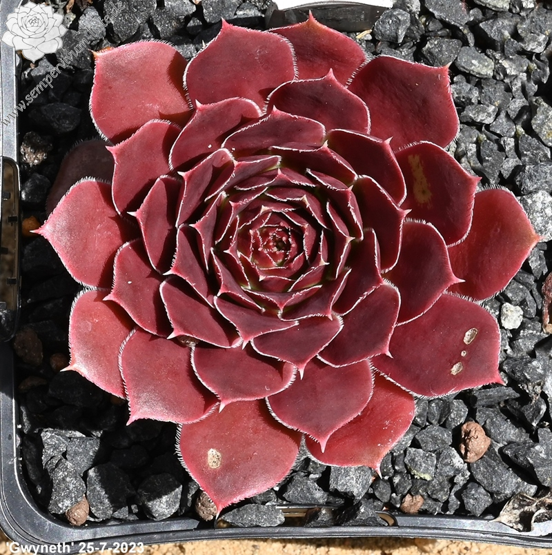 kleine Rosetten, Blätter breit spatelig, kurz bespitzt, signalviolett - rotviolett, Ränder zart bewimpert