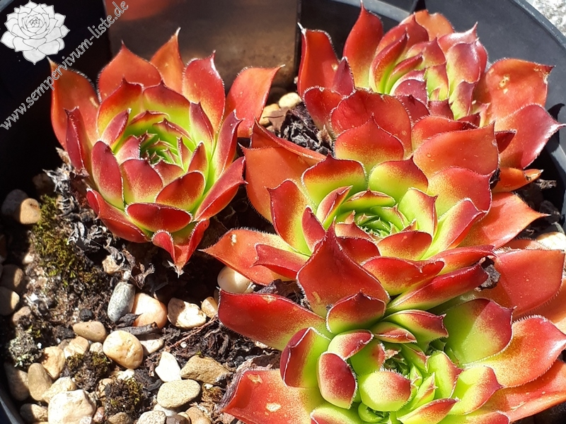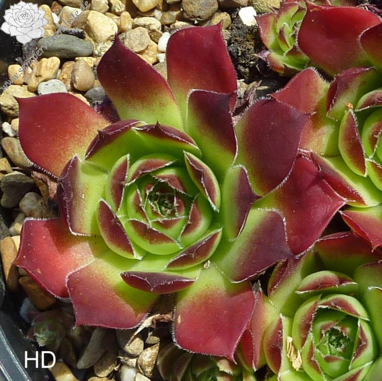 große Rosetten, lindgrün mit leuchtend roten Spitzen