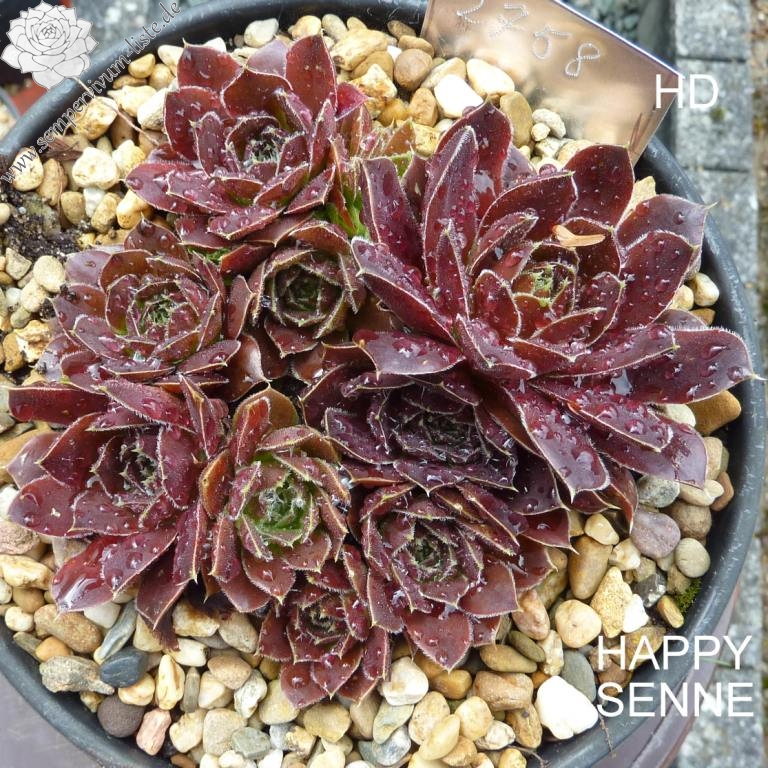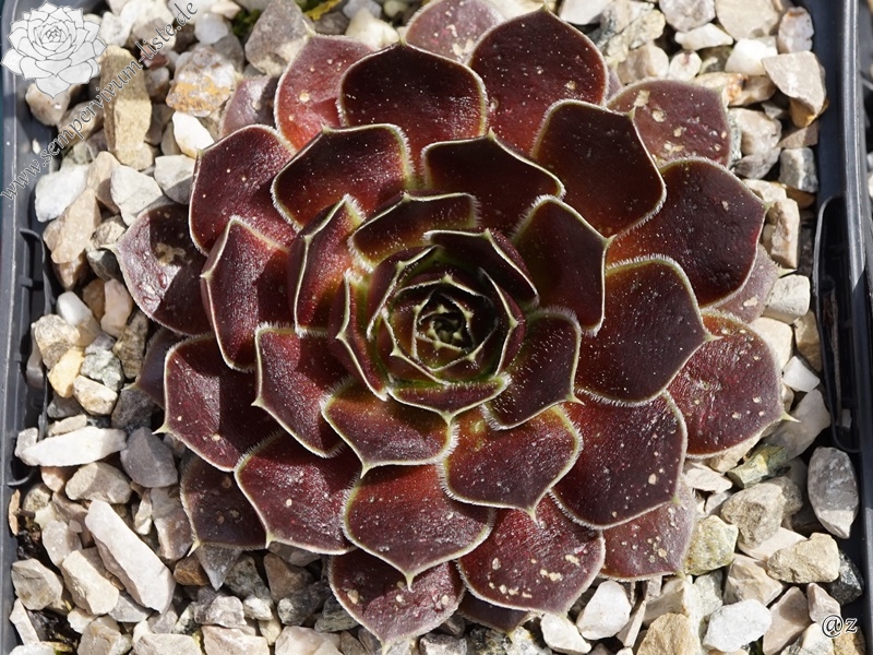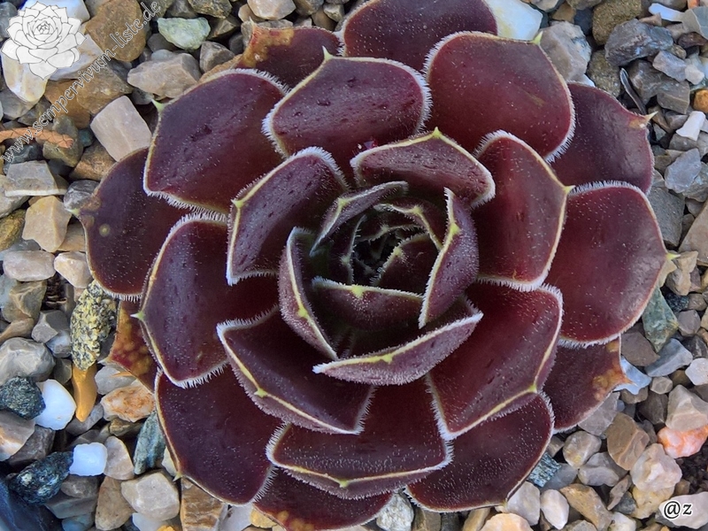 Rosetten bis 8 cm, Blätter oval, kurz bespitzt, erdbeerrot - himbeerrot, Blattränder bewimpert