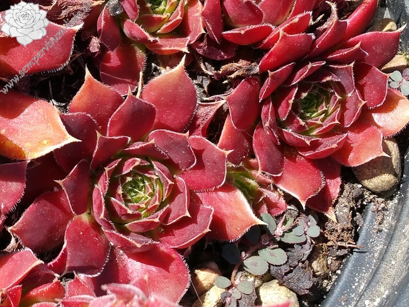 Rosetten 6 -8 cm, dunkles Bordeaurot, Blattränder hell, bewimpert