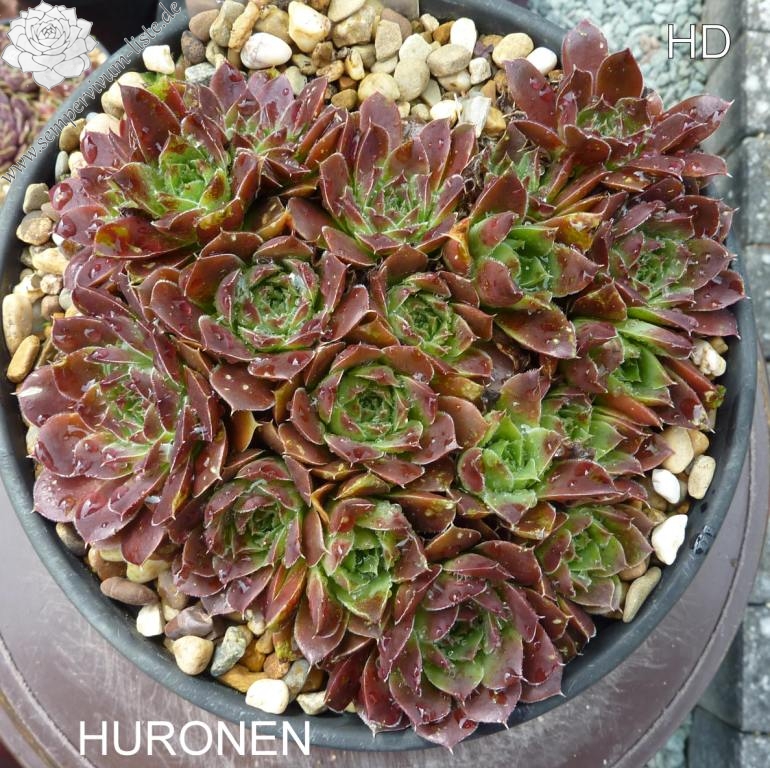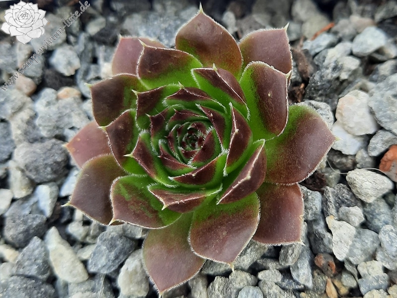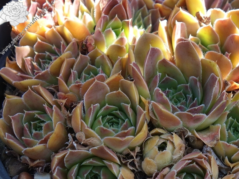 kleine Rosetten, Blätter oval, kurz bespitzt, Basis hellgrün, Rest braunrot - rotorange