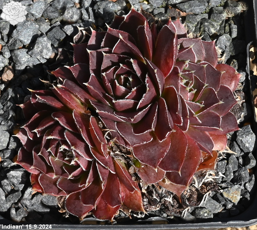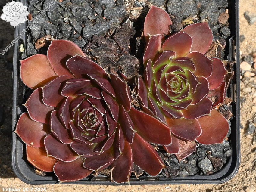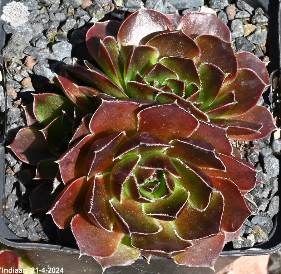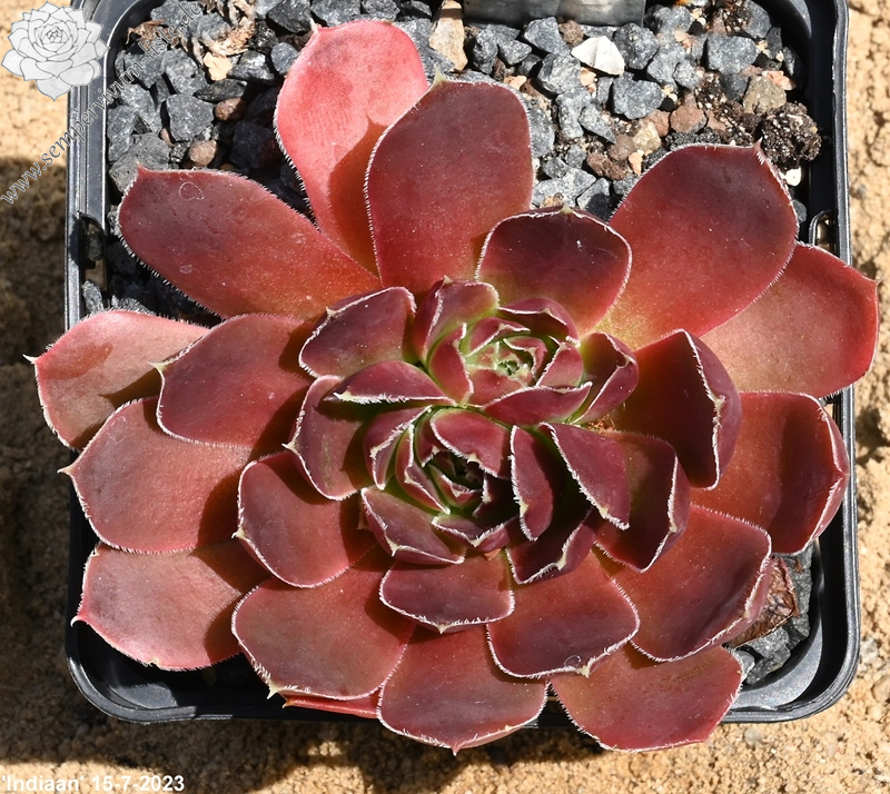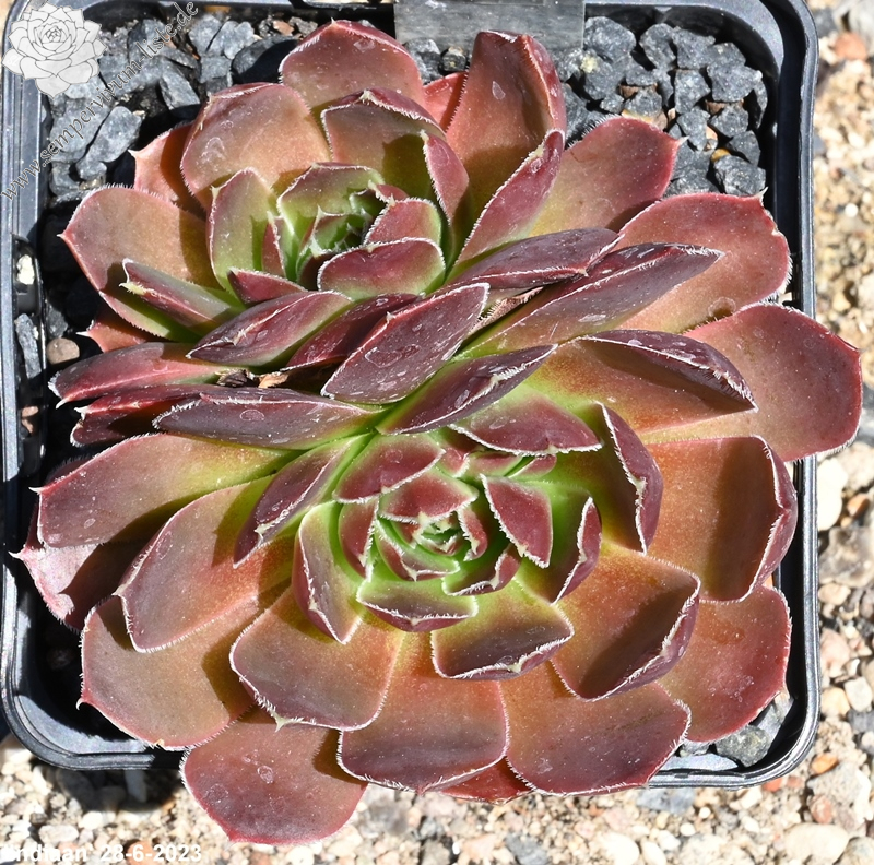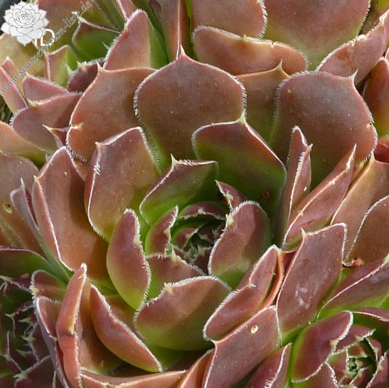 Rosetten bis 7 cm, spatelige Blätter, kurz bespitzt, altrosa, Blattränder silbrig bewimpert