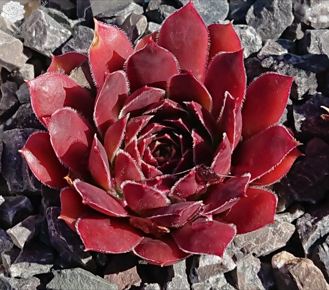 kleine Rosetten, Blätter oval, weinrot, Blättränder bewimpert