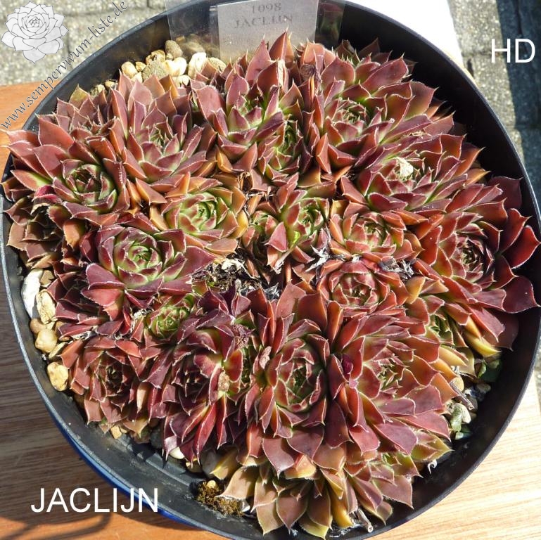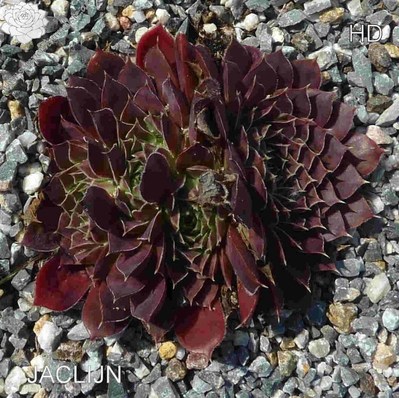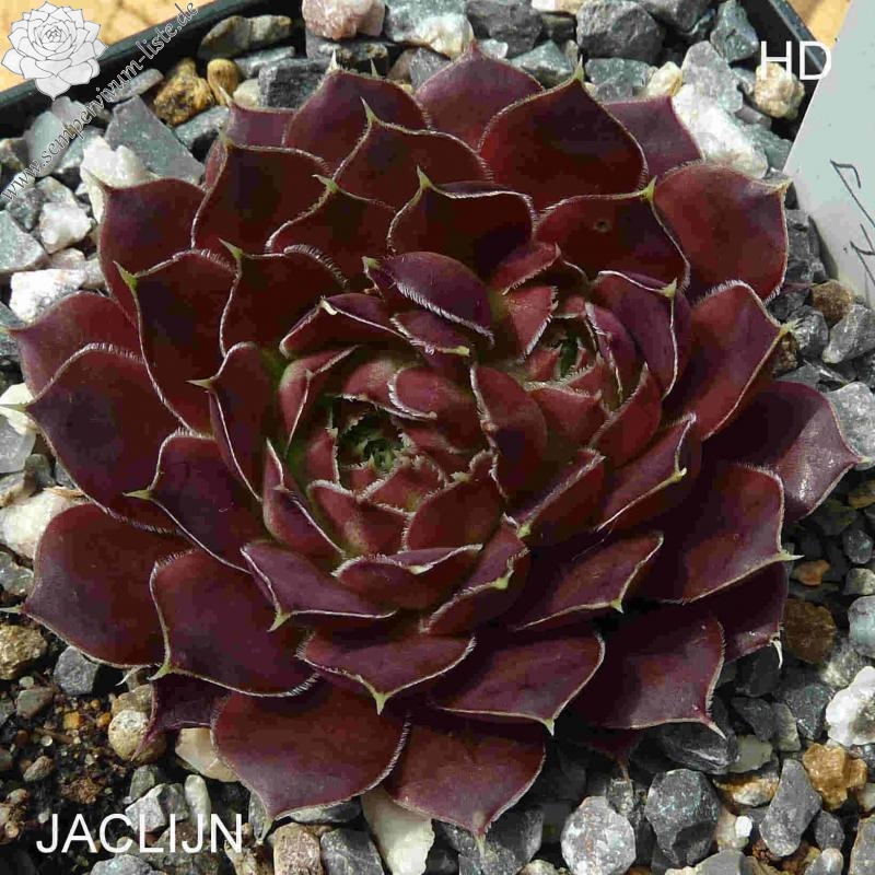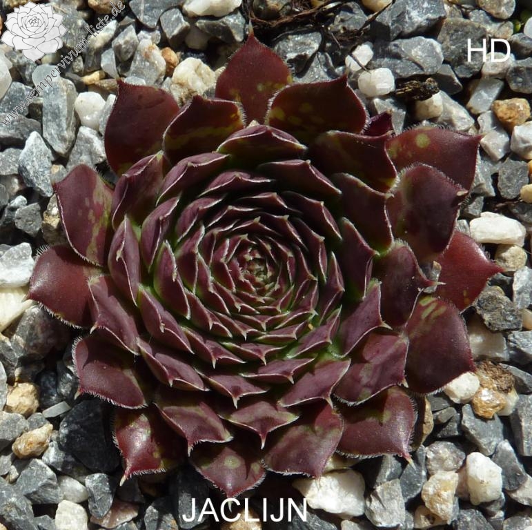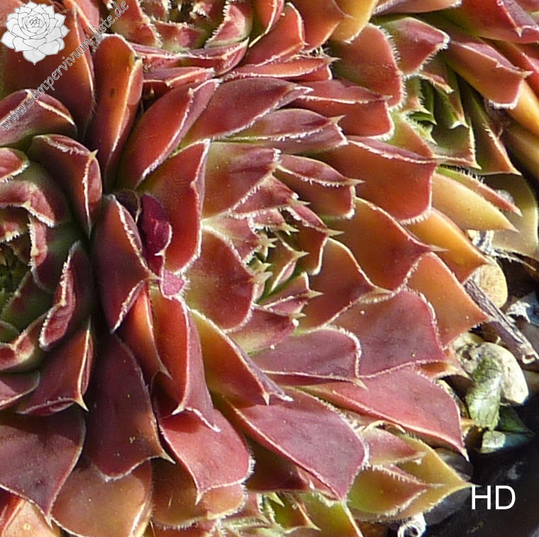 Rosetten bis 6 cm, Blätter länglich oval, lang gespitzt, weinrot, Blattränder bewimpert