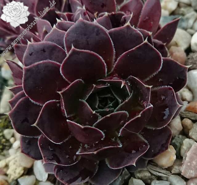 Rosetten bis 7 cm, Blätter breit spatelig, kurz bespitzt, signalviolett, Blattränder kurz bewimpert